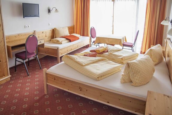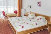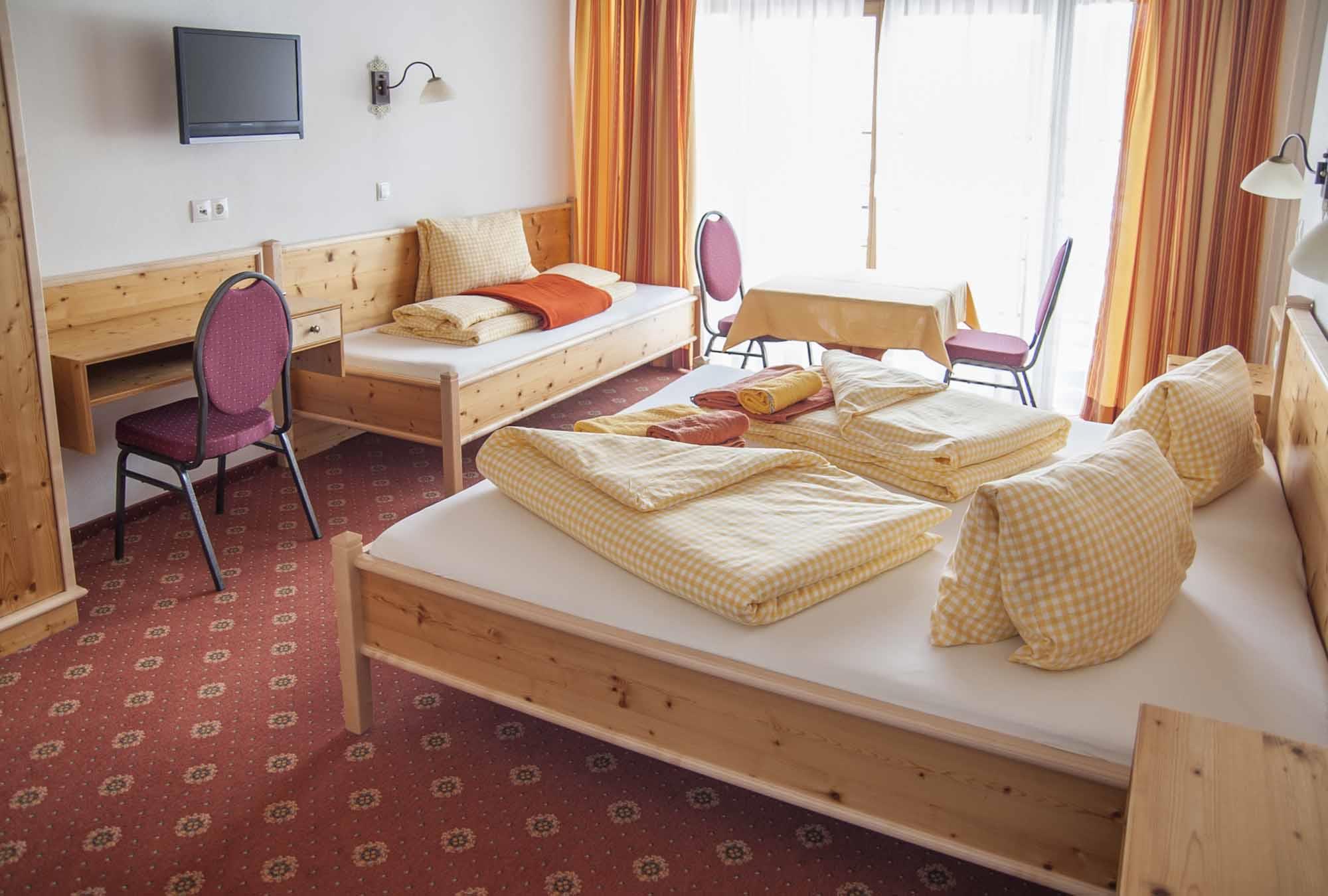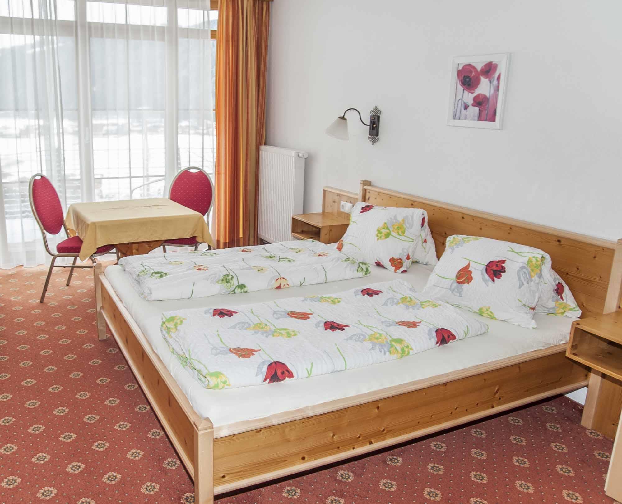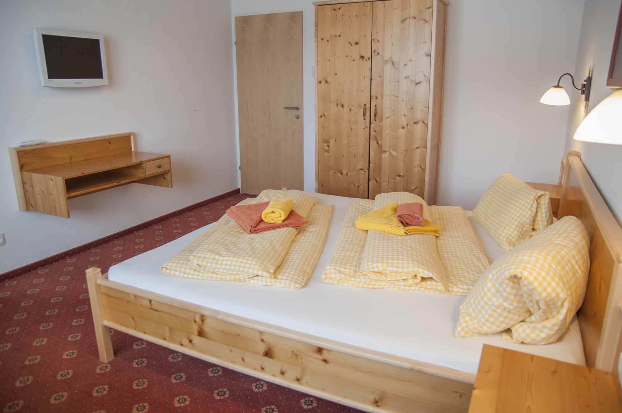 • Schlafzimmer mit Doppelbett , TV, Safe, Tisch und Sitzgelegenheit