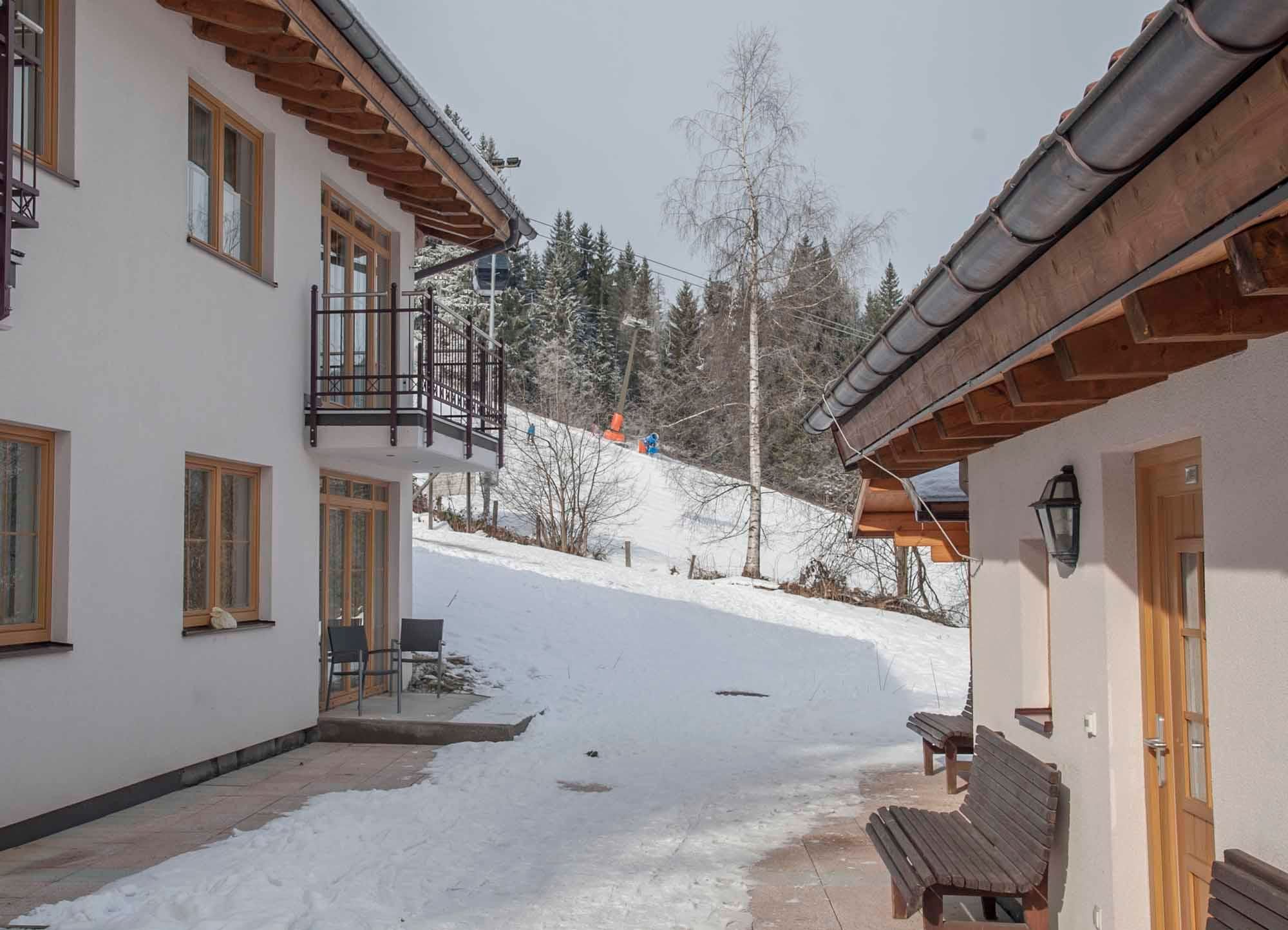 Das Ferienhaus befindet sich direkt an der Skipiste, Loipe und Ortszentrum. Die Studios bestehen aus Vorraum mit Kochnische, Schlafzimmer mit DU/WC, TV, Tisch, Safe und teilweise Terrasse. PKW-Parkplätze direkt beim Haus. W-LAN kostenlos. Für mehrere Personen (ab 10) besteht die Möglichkeit zur Reservierung eines Gemeinschaftsraum. Für Gruppen bieten wir gerne auch Frühstücksservice an.