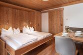• Wohnbereich mit Balkon, klappbarem Doppelbett und Schiebetüre