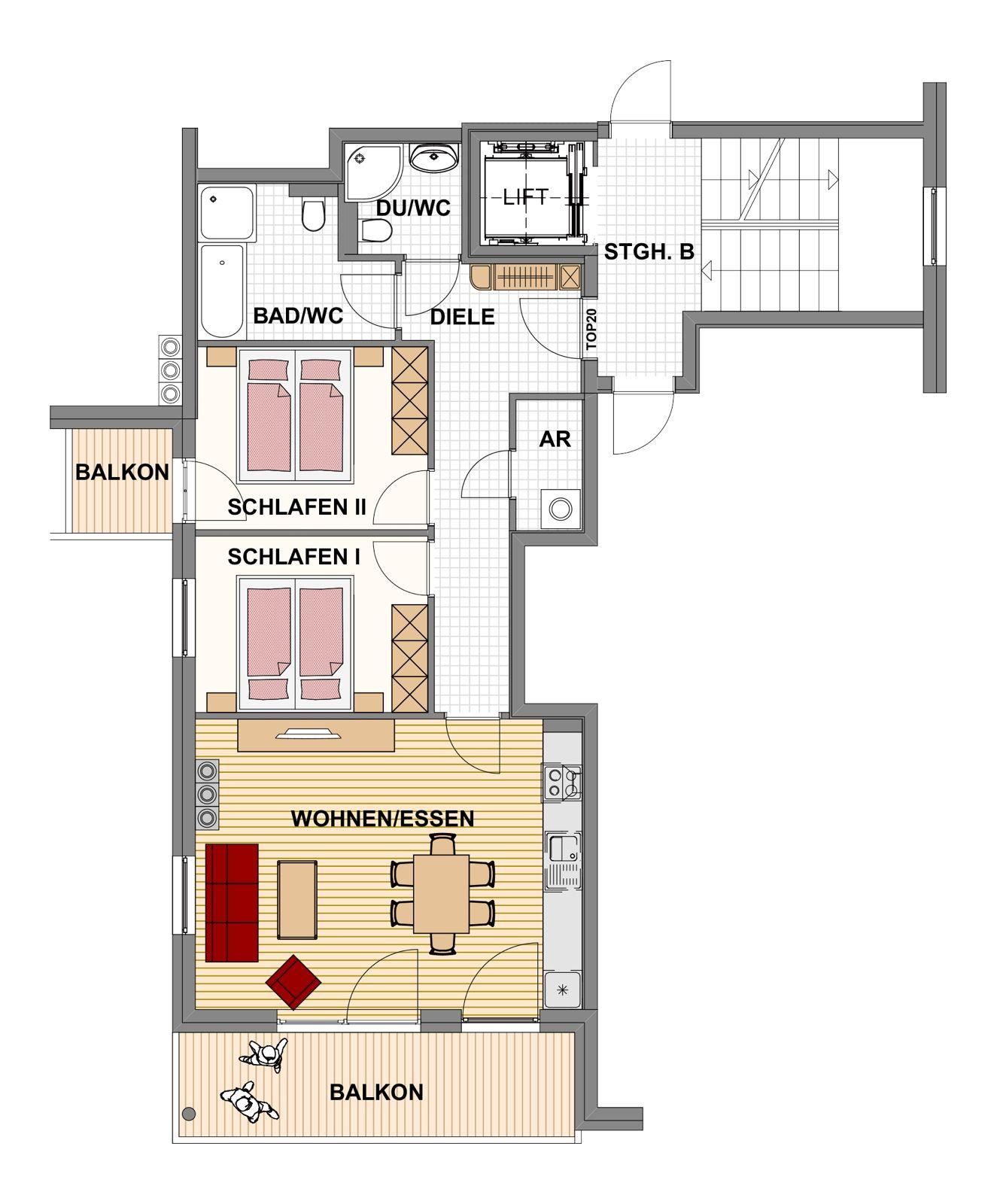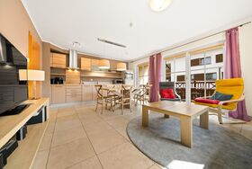 Die geschmackvollen Apartments verfügen über jeweils zwei getrennte Schlafzimmer, einen großen Wohnraum, ein bis zwei Badezimmer und – als Highlight – je über einen sonnigen Balkon: Hier lässt es sich nach dem Skifahren oder Wandern herrlich entspannen! Dank der zentralen Lage findest du in unmittelbarer Nähe der Unterkunft nicht nur die Talstation der Bergbahnen, sondern auch zahlreiche Geschäfte, Cafés und Restaurants.