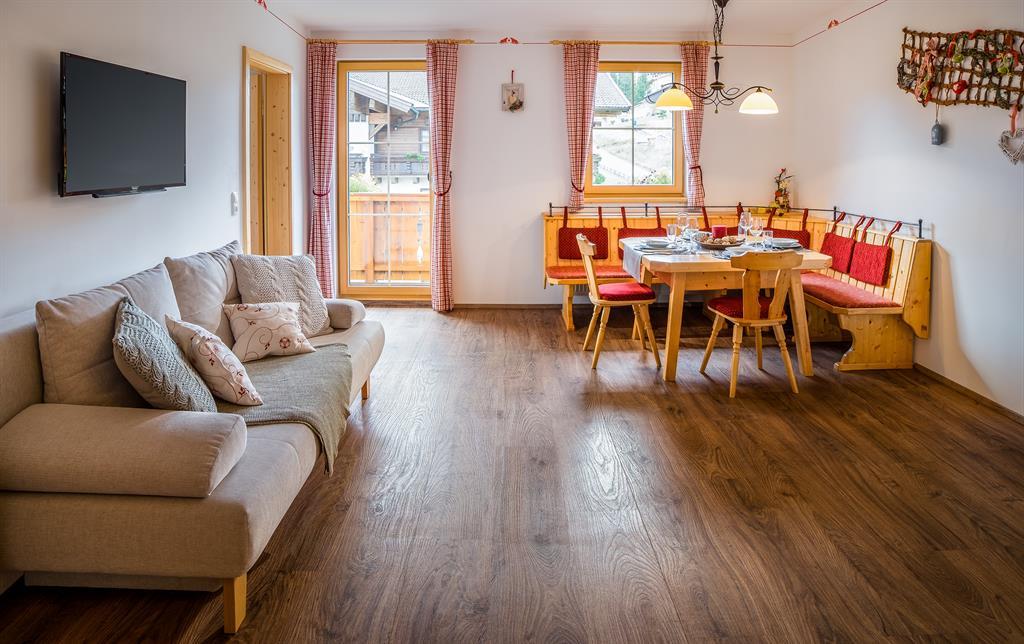 Die geräumigen Apartments befinden sich in einem 3-stöckigen Gebäude und sind alle geschmackvoll mit Tannenholz im Tiroler Stil eingerichtet. Sie umfassen separate Schlafzimmer und eine große, voll ausgestattete Küche mit einem Wohnbereich. Fast jedes Apartment besitzt darüber hinaus einen Balkon, von dem Sie das atemberaubende Bergpanorama genießen können.