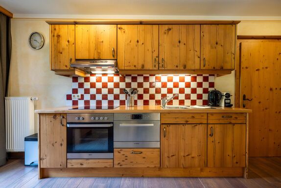 Zwei Doppelzimmer, eine große Wohnküche mit Sitzecke, Vorraum, Dusche/WC, Balkon. 55m² . Im Apartment befinden sich Mikrowelle, Wasserkocher, Kaffeemaschine, Kühlschrank, E-Herd mit Backrohr, TV, W-Lan, Handtücher, Bademäntel.