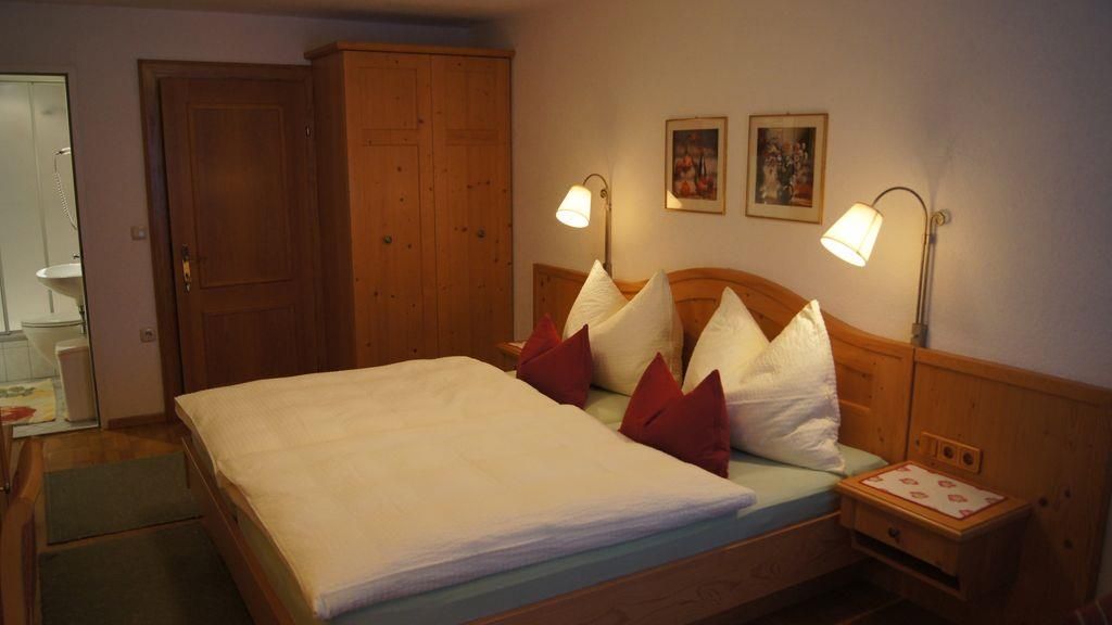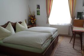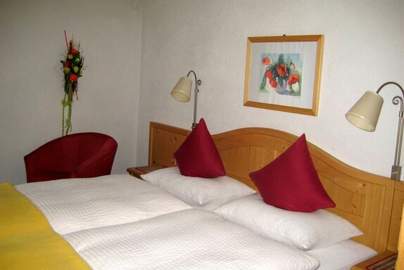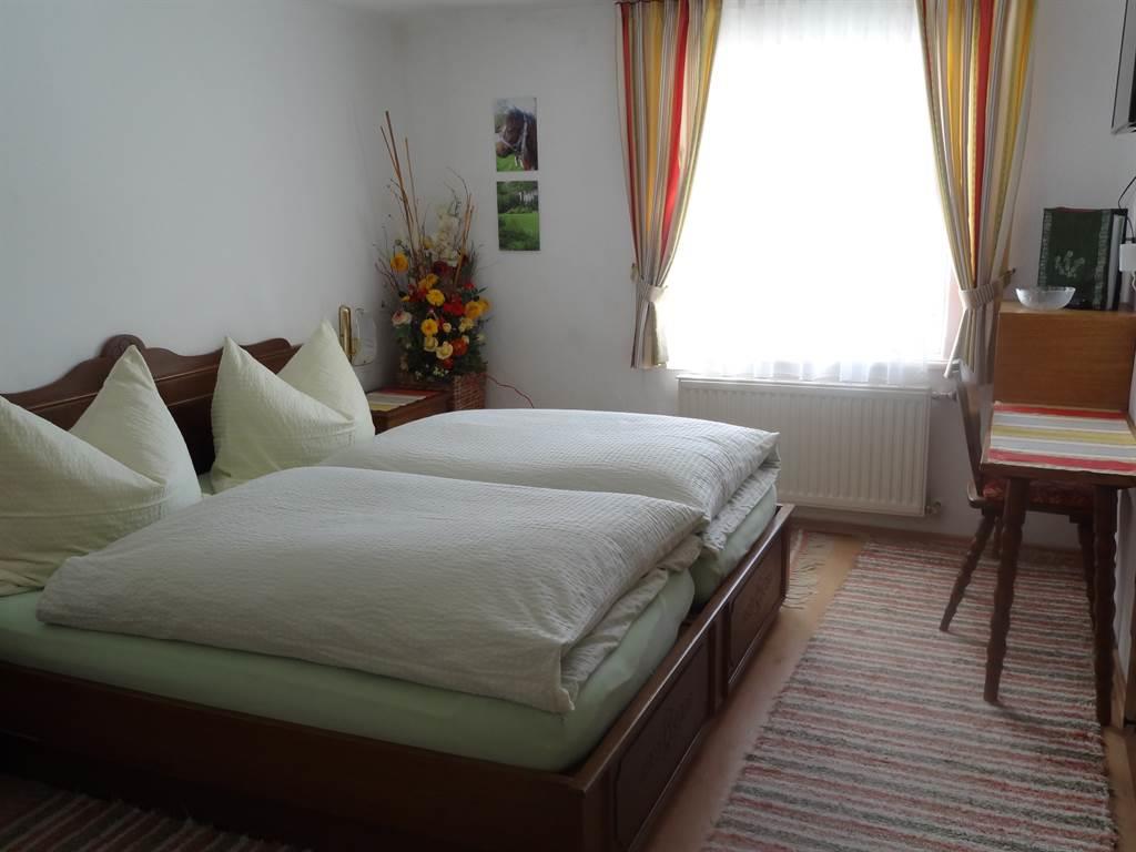 Ruhig gelegenes, neu ausgestattetes Doppelzimmer im Landhausstil. Mit DU/WC und SAT-TV.