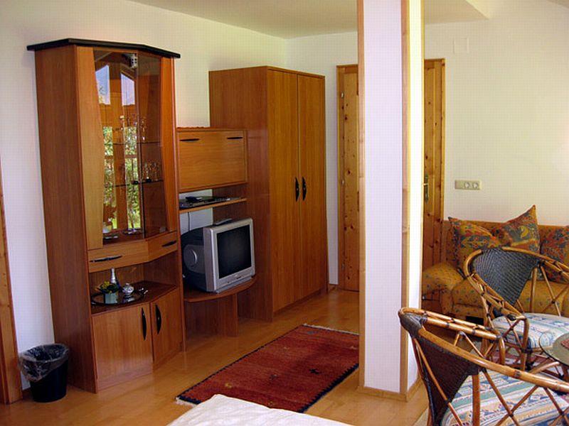HAUS GANDLER 1 Wohnung 70 m2 und 1 Studio 30 m2 (= 100 m2) bis 8 Personen Wohnung 70 m2 1 x großer Wohn-Schlafraum, sehr großzügig, mit abgetrennter, komplett ausgestatteter Wohnküche und Essecke. Wohnraum komplett eingerichtet, mit ausziehbarer Couch, (Schlafmöglichkeit für 2 Personen), zusätzliche Couch, großer Couchtisch, TV mit Kabelanschluss, Stereoanlage, Videorecorder, Internetanschluss; Wohnküche komplett eingerichtet zusätzlich Backofen, Dunst- abzugshaube, Mikrowelle und Geschirrspüler; 1 x extra Schlafraum, modern eingerichtet mit Doppelbett (Zustellbett und Kinderbett zusätzlich möglich) 1 x großes Badezimmer (Badewanne mit Duschwand), WC im Bad + Studio 30m2, Doppelbett, Schlafcouch, DU/WC,TV, + 3. WC am Gang Südbalkon,Sonnenterrasse,Grillmöglichkeit,Parkplatz