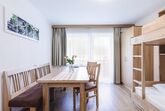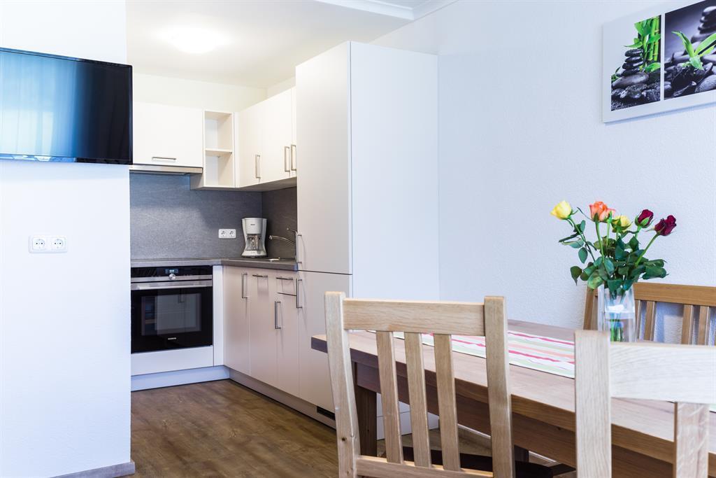 Das Appartement besteht aus einem Doppelzimmer, Wohnküche mit 2 Schlafmöglichkeiten, Badezimmer, extra WC und Balkon. Die Küche ist mit Kühlschrank, Kaffeemaschine, Wasserkocher, Backofen, Microwelle, Geschirrspülmaschine und kompletten Geschirr ausgestattet. Badezimmer mit Dusche, Haarföhn und Handtuchtrockner. Vorraum mit Garderobe und großen Ankleidespiegel. Freies W-lan in der Wohnung.
