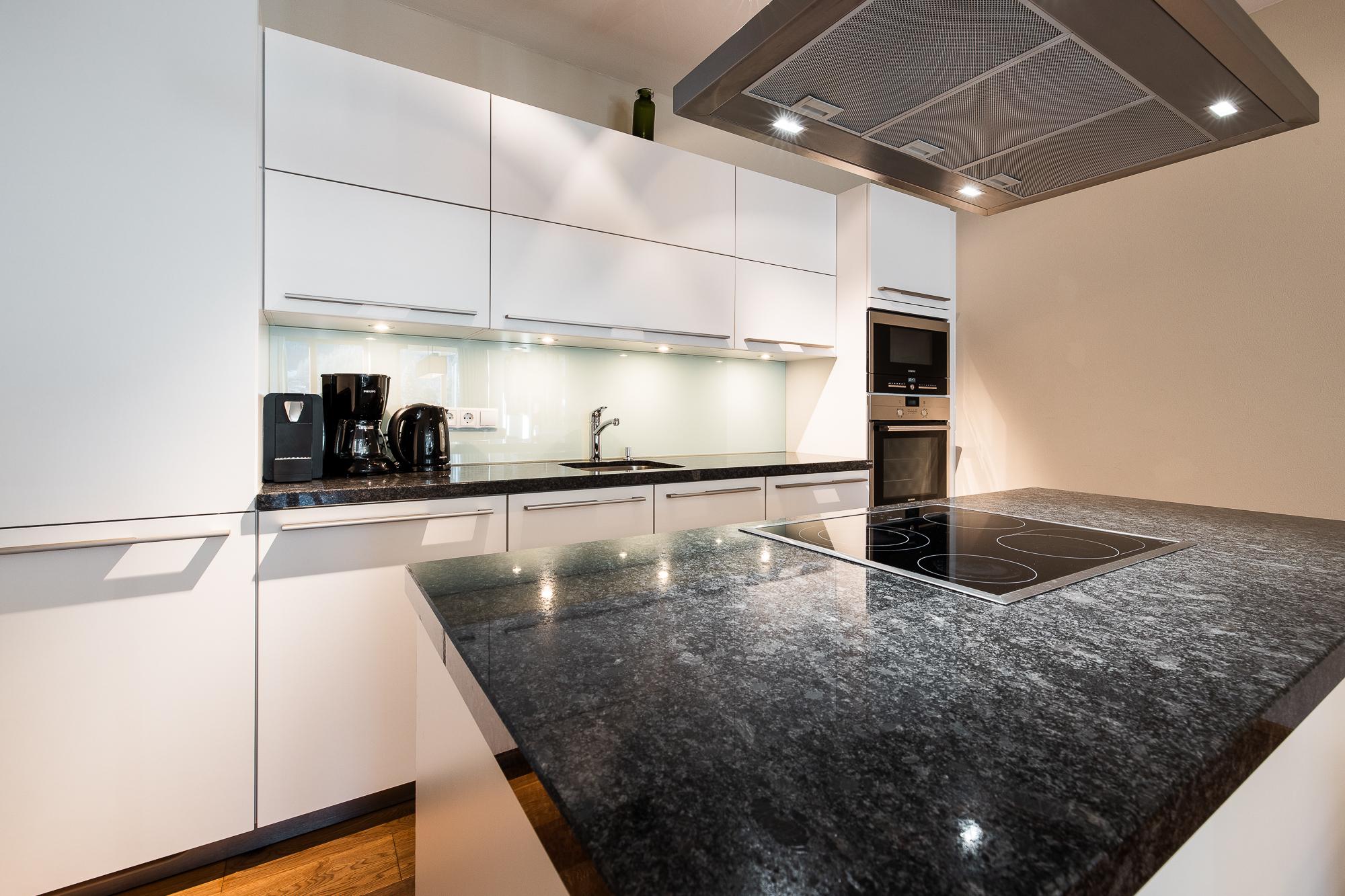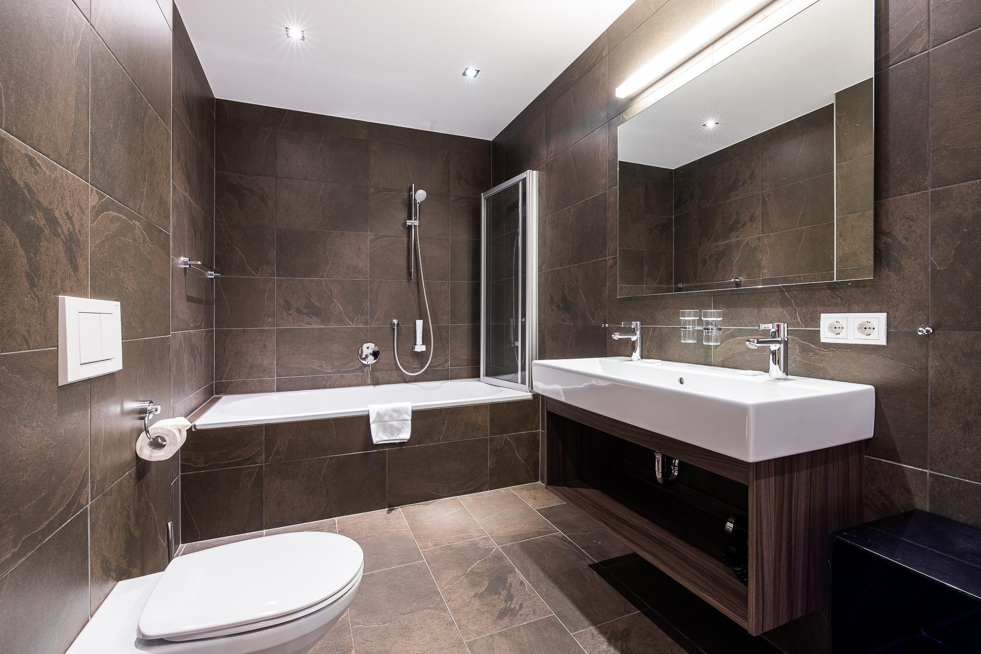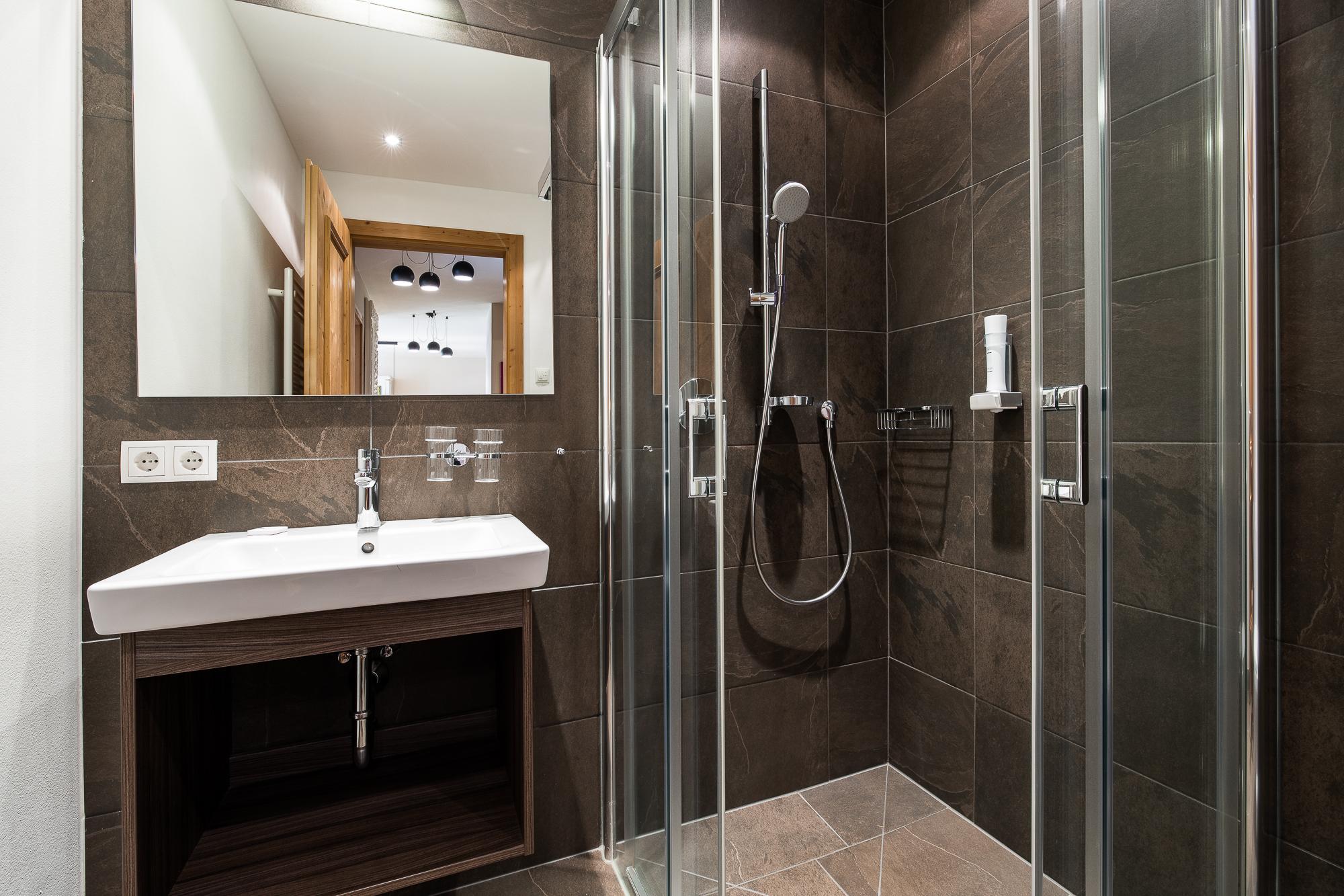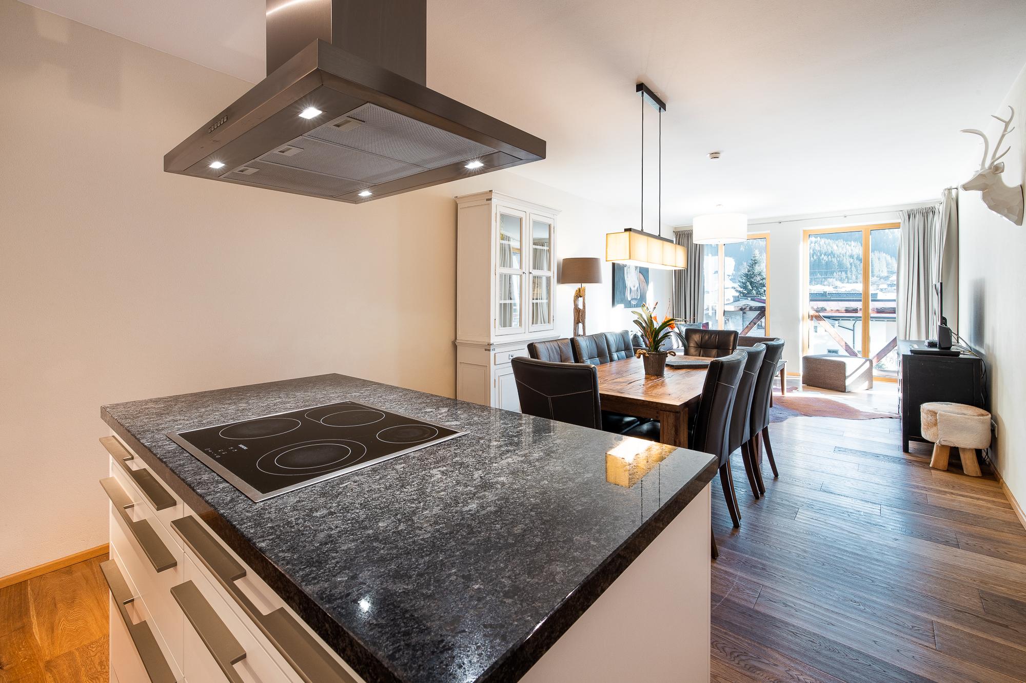 Das Apartment bietet eine Terrasse oder einen Balkon mit Blick auf den Nationalpark Hohe Tauern. Das geschmackvolle Wohnzimmer ist mit einer komfortablen Schlafcouch für 2 Personen (auf Anfrage; EUR 15,00 pro Person/Tag; Bezahlung vor Ort) und LCD Flat-TV ausgestattet. Die hochwertige, offene Küche bietet viel Komfort und ist neben Markengeräten auch noch mit Wasserkocher, Filterkaffee- und Espressomaschine, Toaster, Küchenutensilien und Geschirr ausgestattet. Die 2 Schlafzimmer verfügen über je ein King Size-Boxspringbett, Flat-TVs und direkten Zugang zu Terrasse/Balkon. In einem der beiden Schlafzimmer befindet sich 1 zusätzliches Stockbett. Es gibt 2 hochwertige Badezimmer mit Badewanne oder Dusche im Appartement.