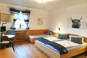 Im großzügigen Gemeinschaftsgarten kann gespielt oder entspannt werden. Natürlich dürfen die Hunde bei uns im Garten frei laufen. Beginnen Sie jeden Tag mit einem köstlichen Frühstück, das aus hofeigenen Produkten zubereitet wird und für den perfekten Start in den Tag sorgt.