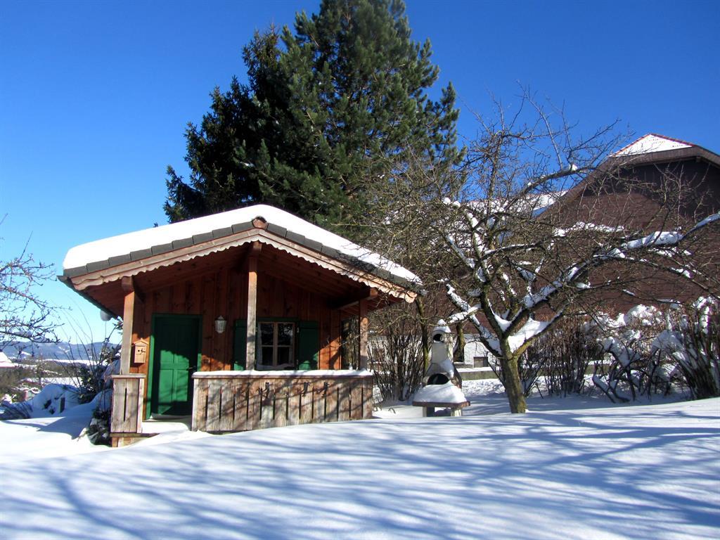Bei uns gibt es einen schönen Garten mit Kinderspielplatz. Wir haben Kühe, Hühner, Hasen, Katzen und einen Hund.