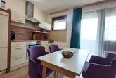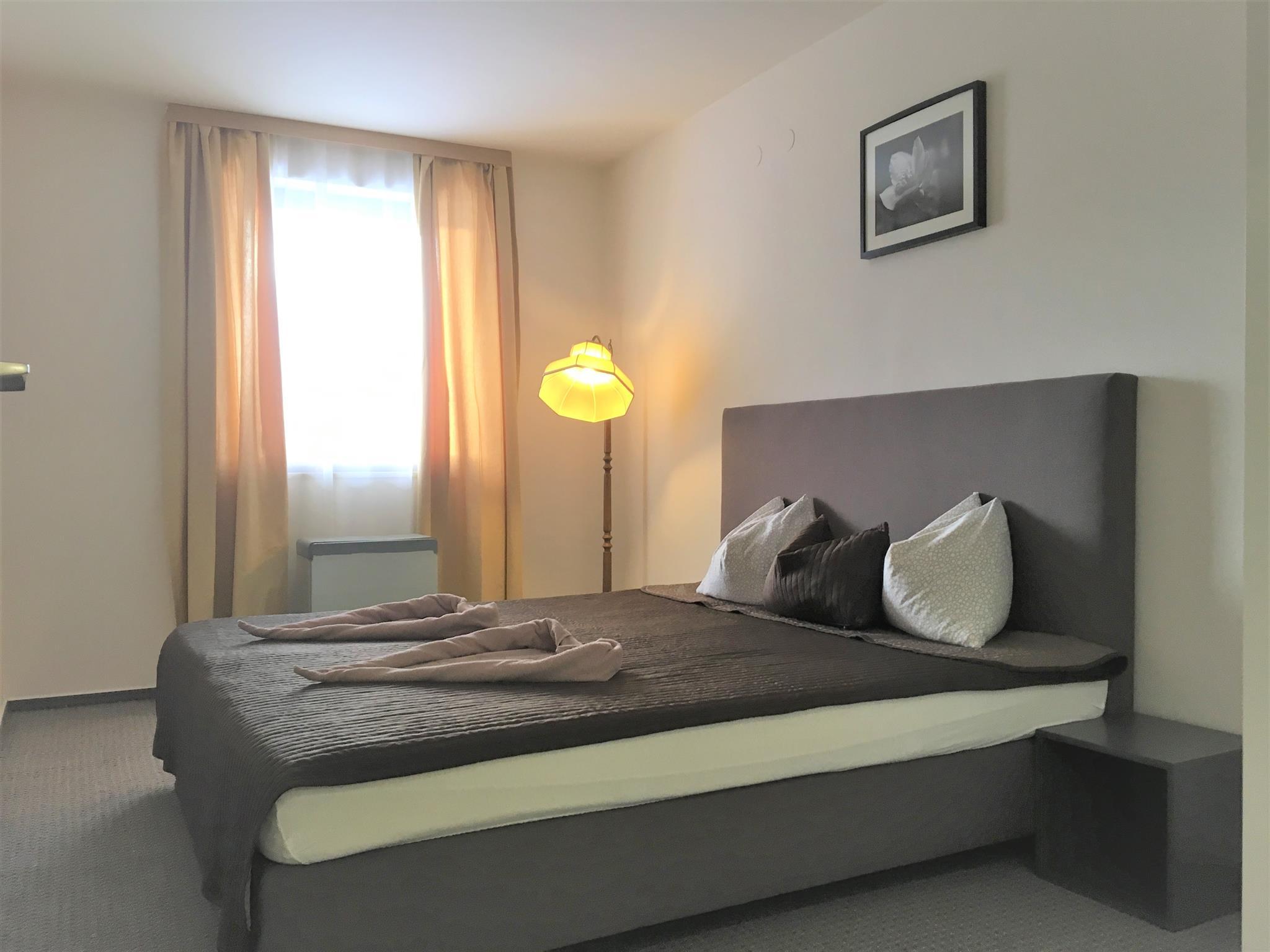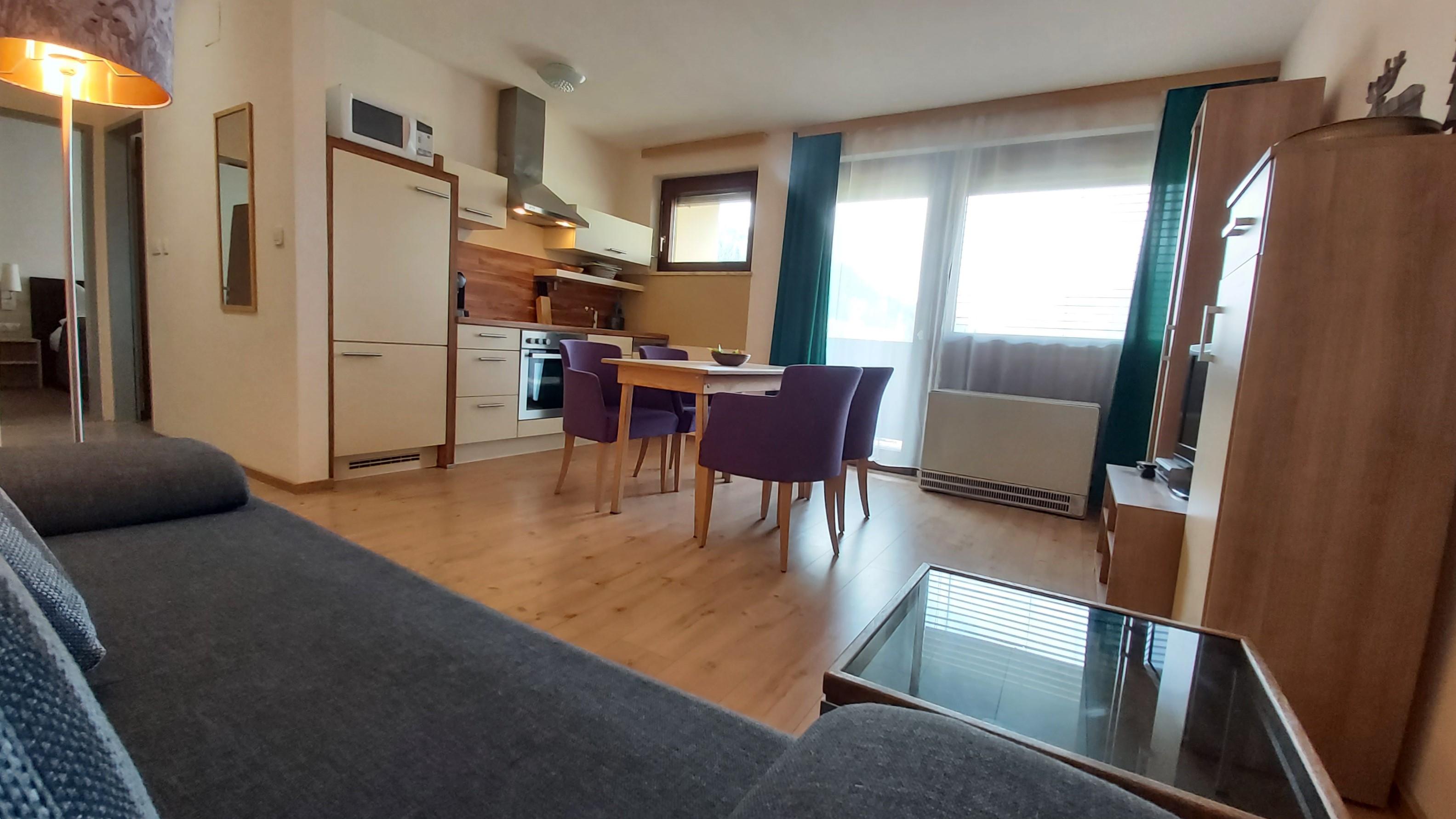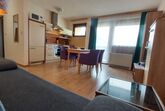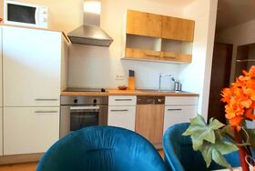 1 Wohnzimmer/Esszimmer mit Sofa (Bettfunktion), TV, offene Küche, 1 Schlafzimmer, Bad mit Dusche, Balkon mit Tisch und Stühle, Zugang zur Raucherzone. Küchenausstattung: Elektroherd, Kühlschrank, Mikrowelle, Kaffeemaschine, Backofen, Geschirr, Besteck Ausstattung der Zimmer: Wäsche für die Betten