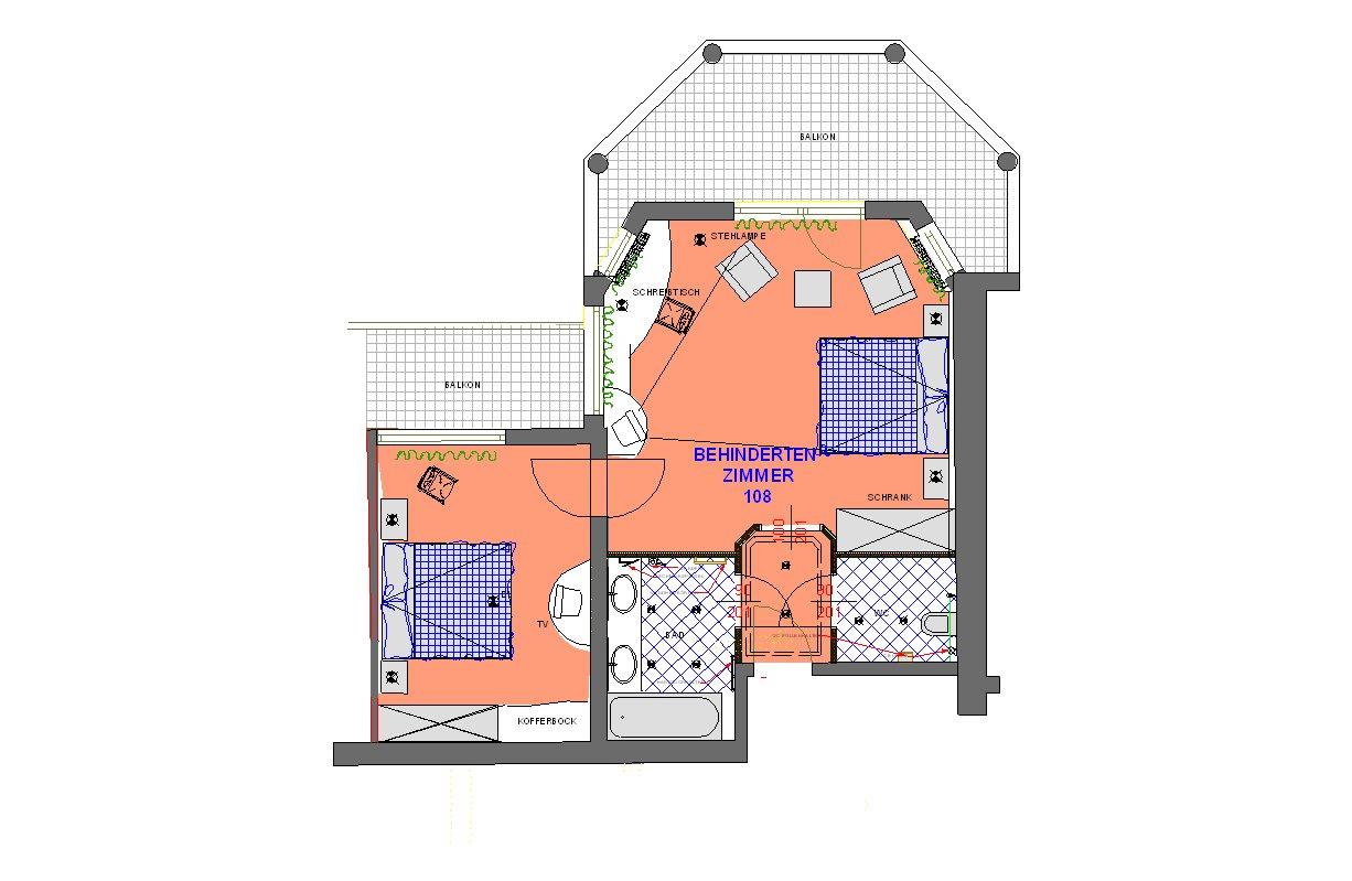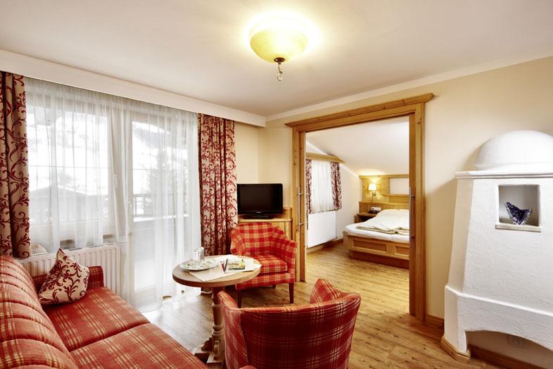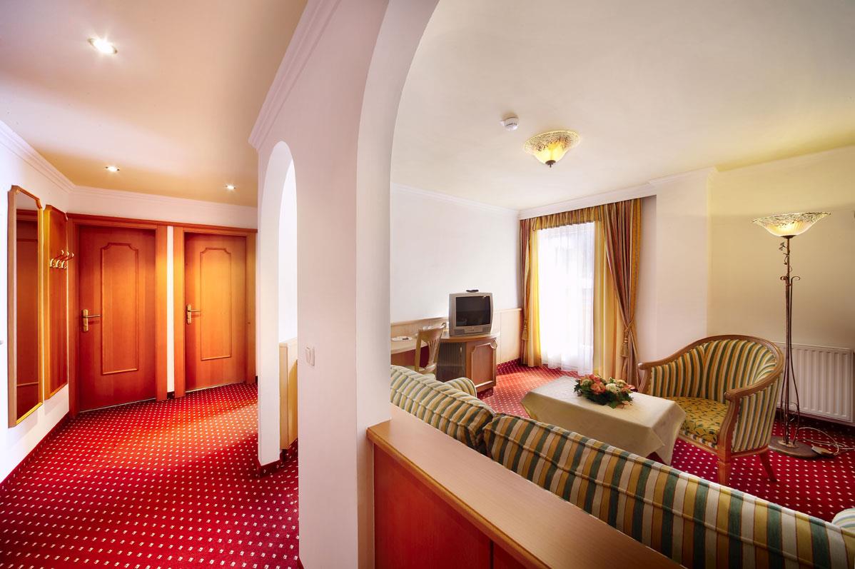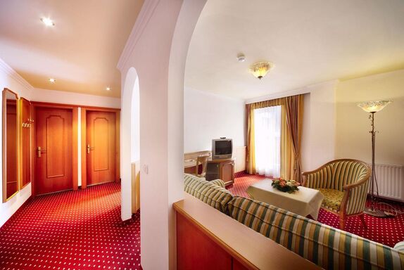 Hotelappartement mit Dusche, WC getrennt, TV, Radio, Terrasse, Eltern und Kinderschlafzimmer durch Verbindungstüre getrennt