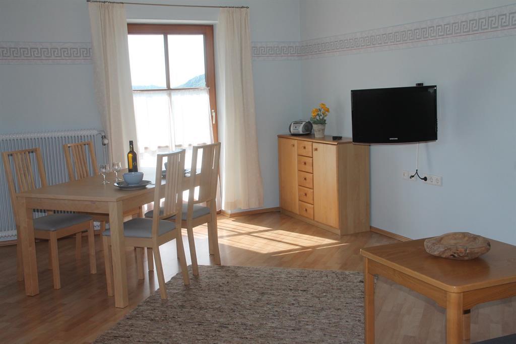 Unsere neugestaltete Ferienwohnung liegt im Erdgeschoß unseres Hauses mit direktem Gartenzugang. Von der Terrasse aus sehen Sie auf die Ortschaft und den gesamten See hinab. Die Wohnung verfügt über ein Vorzimmer, eine großzügige und komplett ausgestattete Küche, ein Wohnzimmer mit ausziehbarer Couch / TV, ein Schlafzimmer mit Doppelbett und ein Badezimmer mit Dusche/WC. Auf Wunsch kann ein nebenliegendes Doppelzimmer mit eigenem Badezimmer als zusätzliches Schlafzimmer dazugebucht werden. Neben der Bereitstellung von Bettwäsche, Hand-, Dusch- und Geschirrtüchern, bieten wir Ihnen die Möglichkeit ihre persönliche Wäsche bei uns zu waschen. Brötchenservice wird angeboten. Haben wir ihre Neugierde geweckt? Wir würden uns freuen...