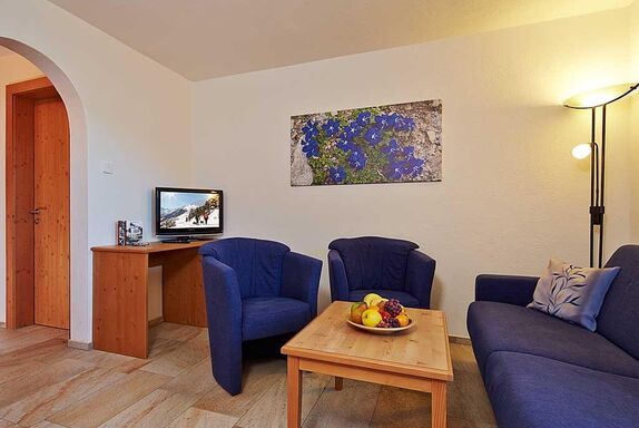 Unser Appartement Enzian befindet sich im ersten Stock und bietet Ihnen ein Schlafzimmer mit Doppelbett, Dusche, separates WC, Wohnraum mit Doppelbettsofa, Küchenblock, sowie SAT-TV und W-Lan und verfügt über einen eigenen Balkon.