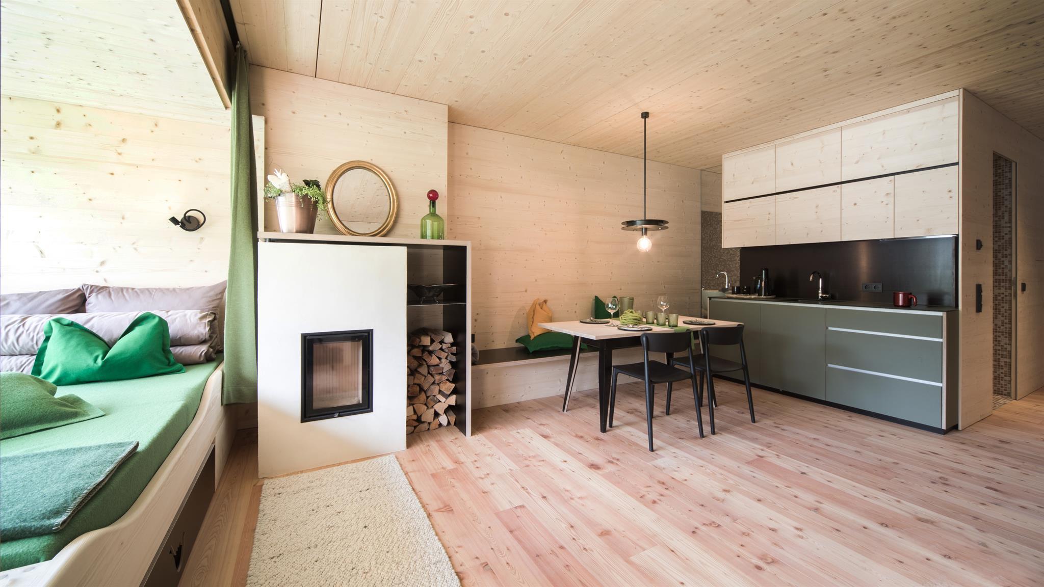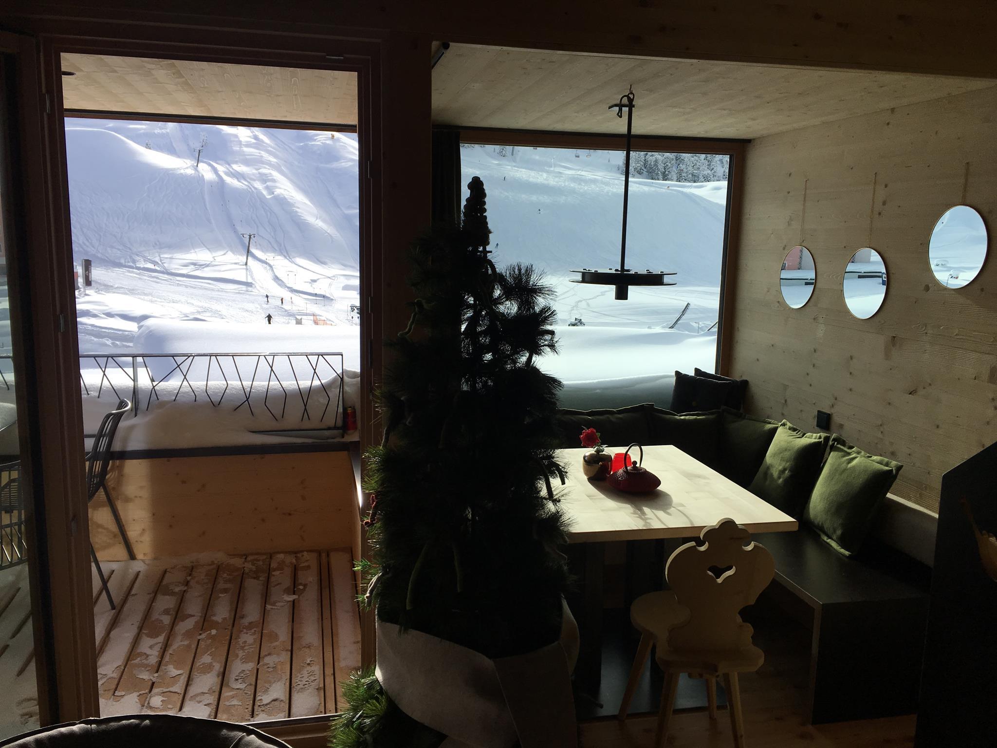 Frei, zeitgeistig und designbewusst steht das 3-Seenhaus da – auf einer stattlichen Höhe von 2.000 m, im reizvollen Kontrast zu seinem aristokratischen Elternhaus. Es duftet nach Lärche und Geborgenheit – ein sinnliches, architektonisches Meisterstück mit Ferien-Appartements, direkt am 3-Seenlift.