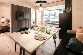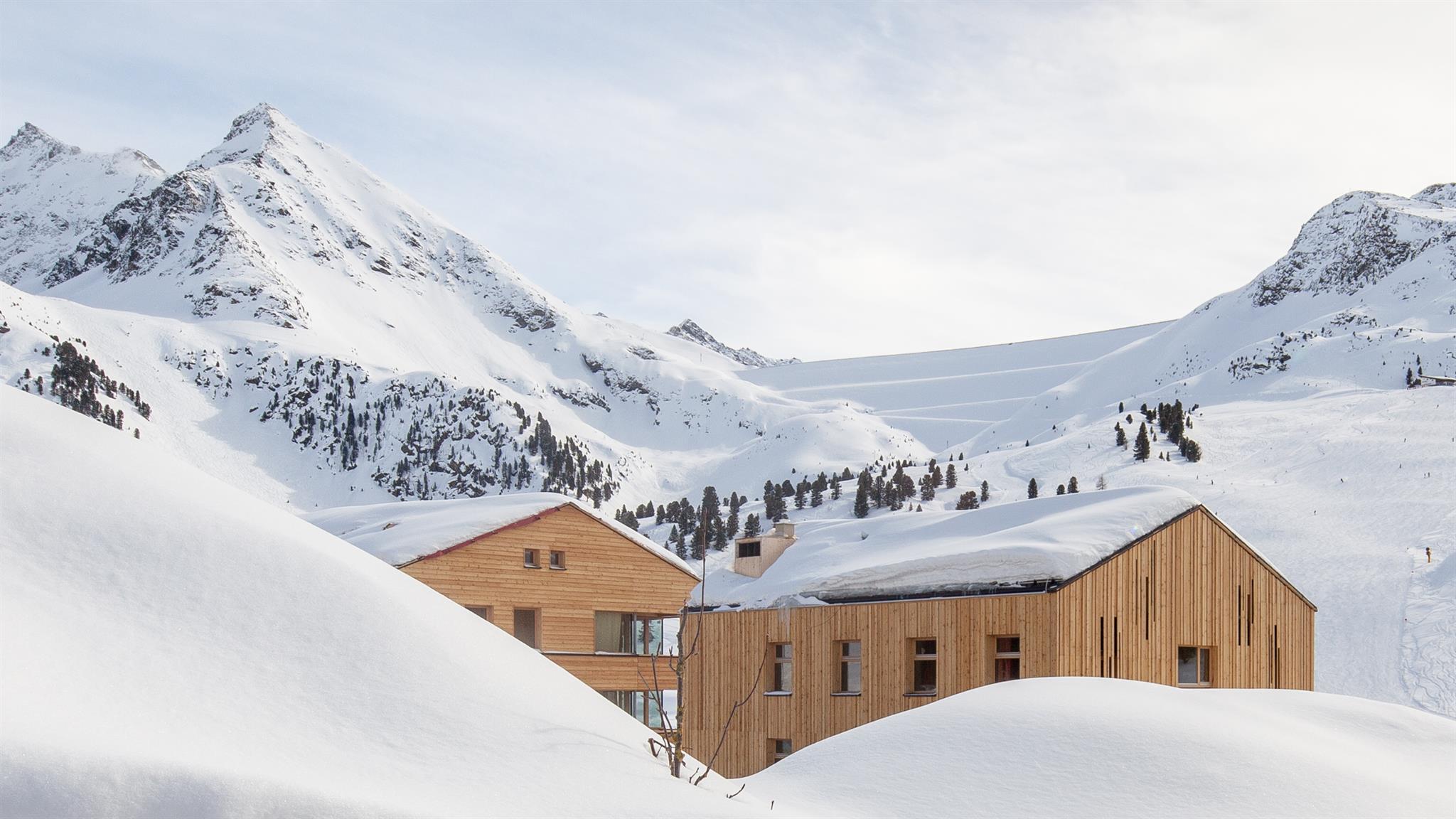 Frei, zeitgeistig und designbewusst steht das 3-Seenhaus da – auf einer stattlichen Höhe von 2.000 m, im reizvollen Kontrast zu seinem aristokratischen Elternhaus. Es duftet nach Lärche und Geborgenheit – ein sinnliches, architektonisches Meisterstück mit Ferien-Appartements, direkt am 3-Seenlift.