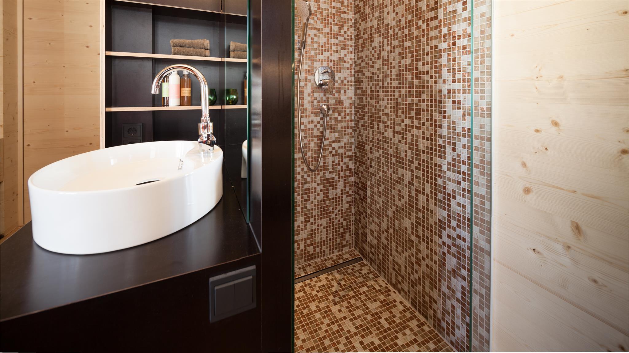 Frei, zeitgeistig und designbewusst steht das 3-Seenhaus da – auf einer stattlichen Höhe von 2.000 m, im reizvollen Kontrast zu seinem aristokratischen Elternhaus. Es duftet nach Lärche und Geborgenheit – ein sinnliches, architektonisches Meisterstück mit Ferien-Appartements, direkt am 3-Seenlift.