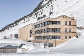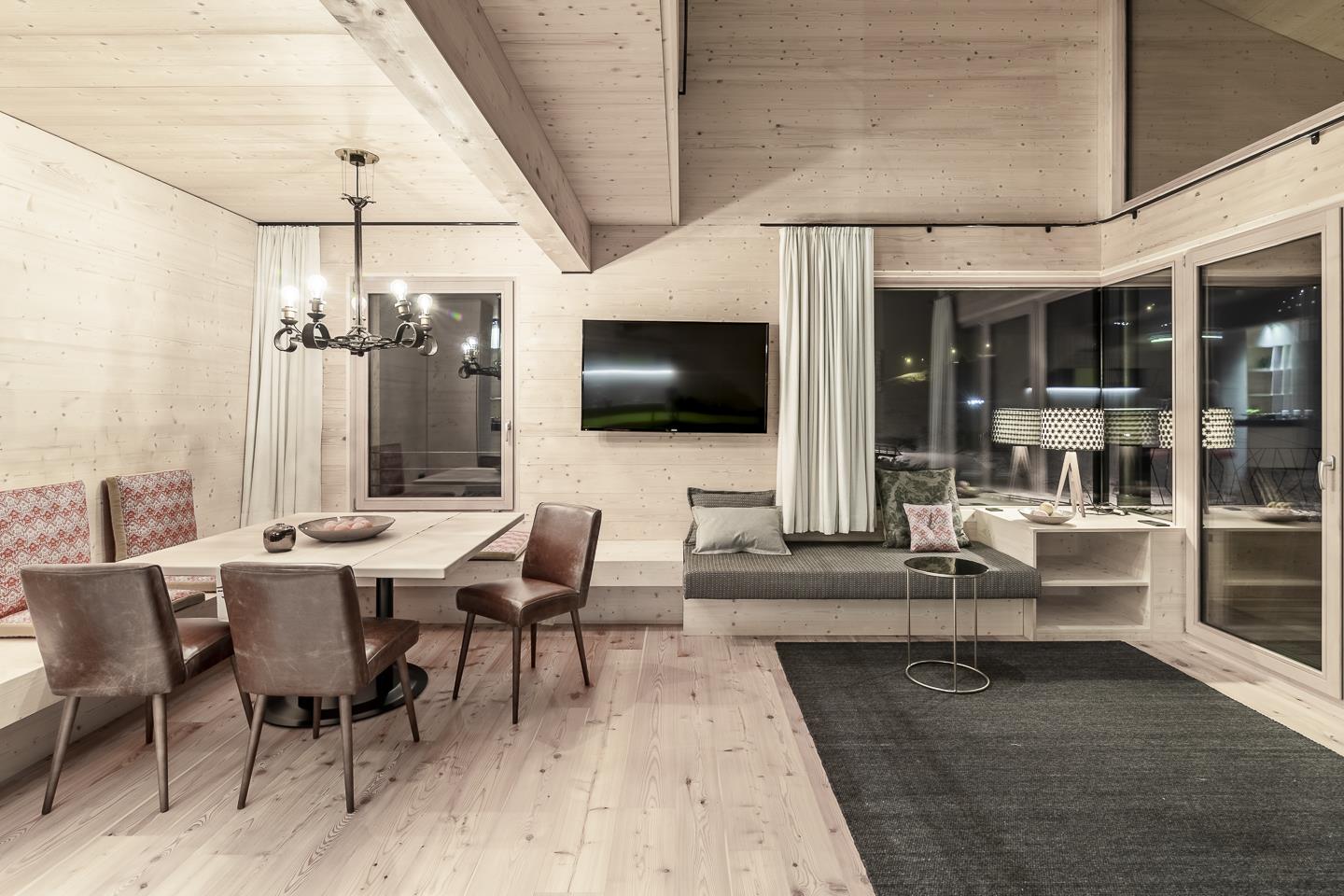 Frei, zeitgeistig und designbewusst steht das 3-Seenhaus da – auf einer stattlichen Höhe von 2.000 m, im reizvollen Kontrast zu seinem aristokratischen Elternhaus. Es duftet nach Lärche und Geborgenheit – ein sinnliches, architektonisches Meisterstück mit Ferien-Appartements, direkt am 3-Seenlift.