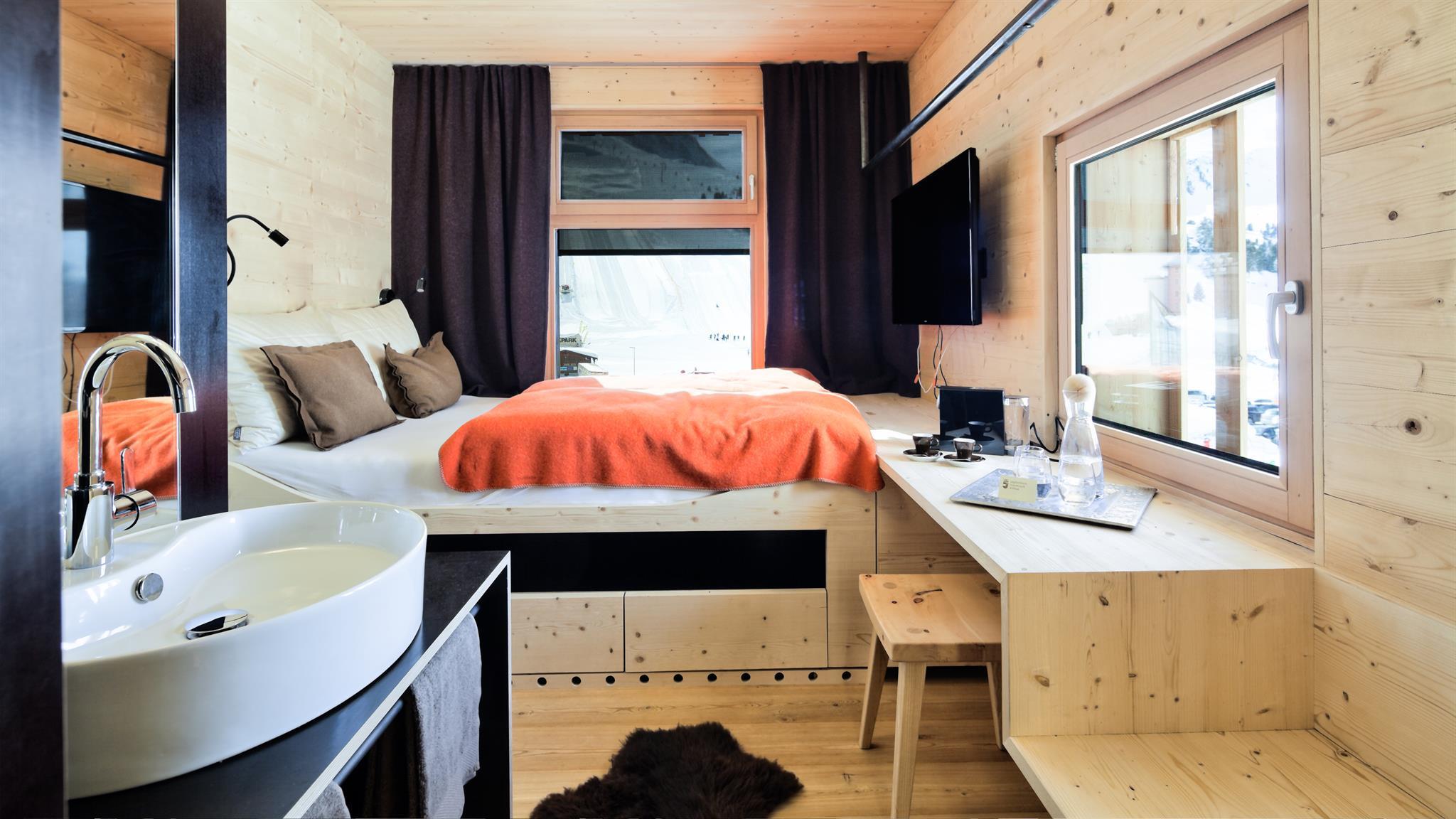 Frei, zeitgeistig und designbewusst steht das 3-Seenhaus da – auf einer stattlichen Höhe von 2.000 m, im reizvollen Kontrast zu seinem aristokratischen Elternhaus. Es duftet nach Lärche und Geborgenheit – ein sinnliches, architektonisches Meisterstück mit Ferien-Appartements, direkt am 3-Seenlift.