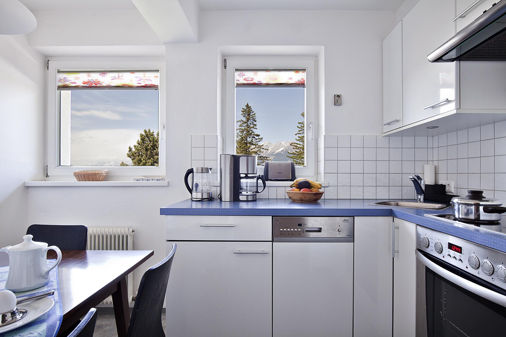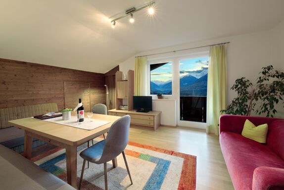 Unsere Apartment Brennerspitz eignet sich ebenfalls für 2 bis 4 Personen. Im obersten Stockwerk genießen Sie viel Ruhe und einen phantstischen Ausblick auf die Bergwelt. Wie in allen Apartments, separate moderne Küche!