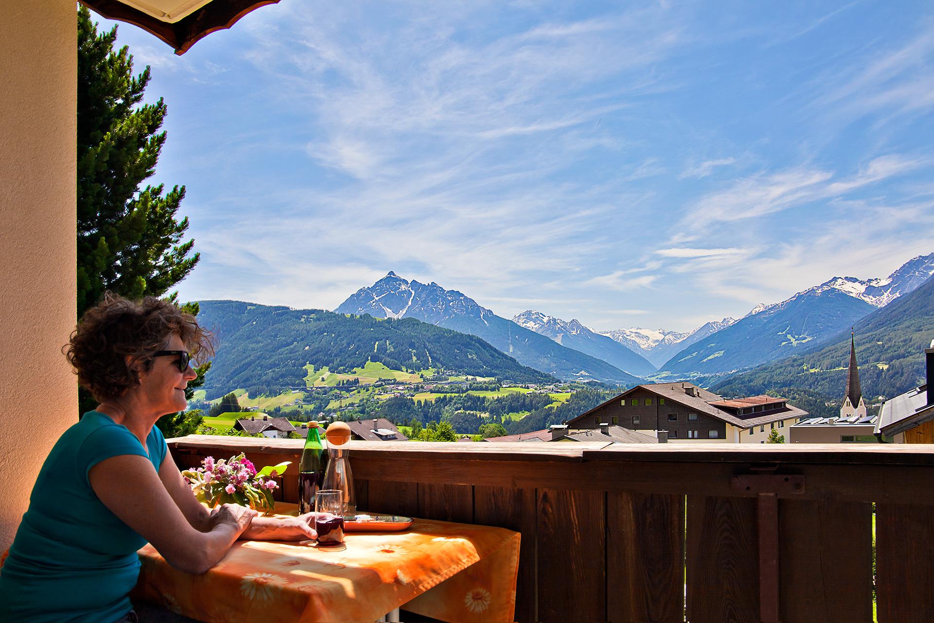 Stadtnähe, und Wohnen im Grünen mit der schönsten Aussicht Tirols von den Brennerbergen (Italien) über den Stubaier Gletscher bis zur Zugspitze (Deutschland) Die 5 Apartments im Tiroler Alpenhof in verschiedenen Größen sind für 2 bis 7 Personen