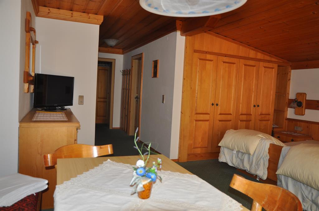 Wohnschlafraum mit zwei oder drei Betten, gemütliche Sitzecke, ein separates Zimmer mit zwei getrennten Betten, Bad, WC, Kochnische, Sat-TV und Balkon.