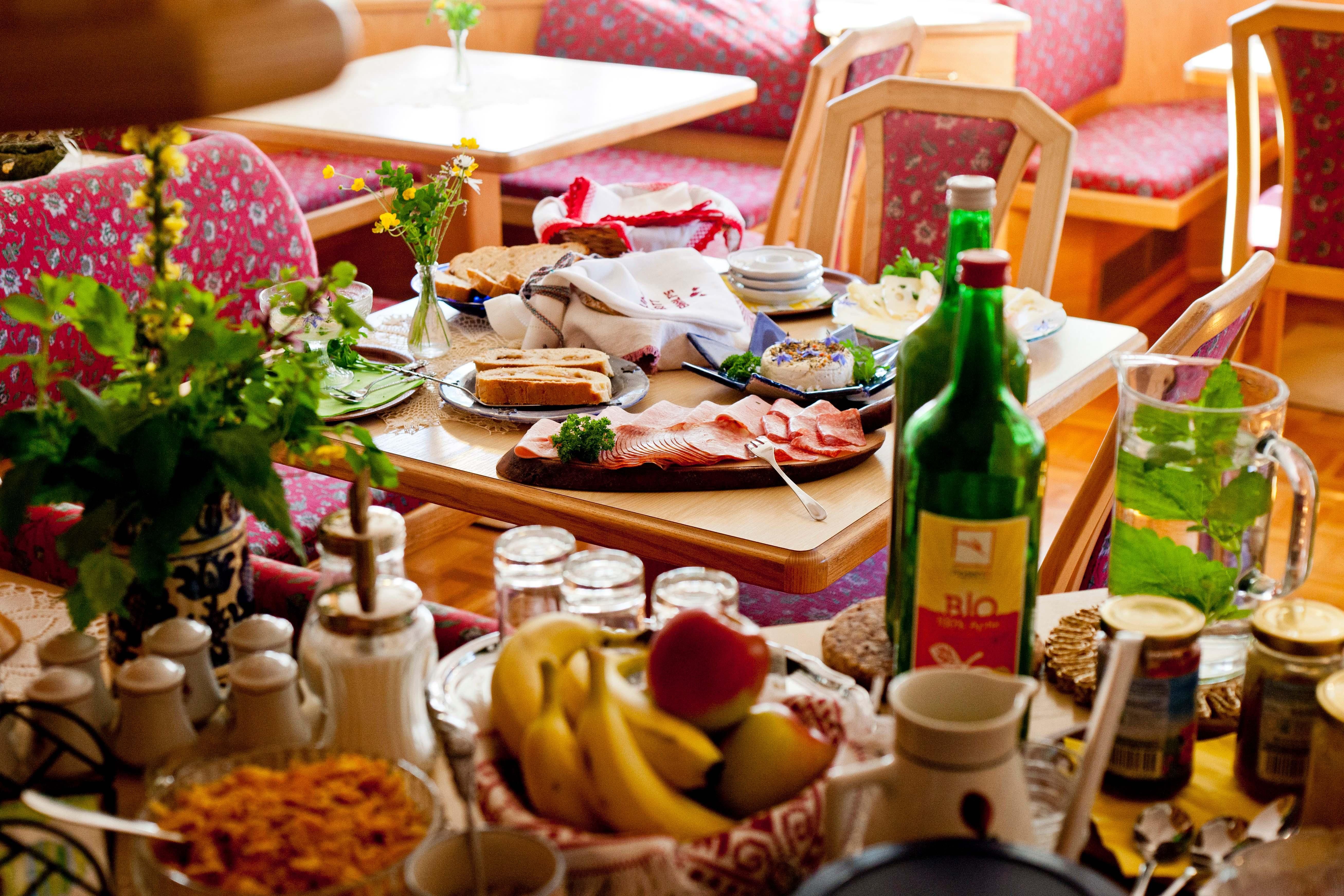 “Der Natur nahe zu jeder Jahreszeit” - Produkte aus der eigenen Landwirtschaft sind wohl auch das Salz in der Suppe am Biobauernhof in Ramsau am Dachstein in Österreich. Morgens stärken Sie sich am Bio-Frühstücksbuffet mit hausgemachtem Holzofenbrot, selbst gequetschten Haferflocken, frischer Milch, Frischkäse, hausgemachtem Joghurt, Krapfen, Marmelade und Honig aus der eigenen Imkerei. Lassen Sie jeden Tag neu mit Energie und Freude beginnen.