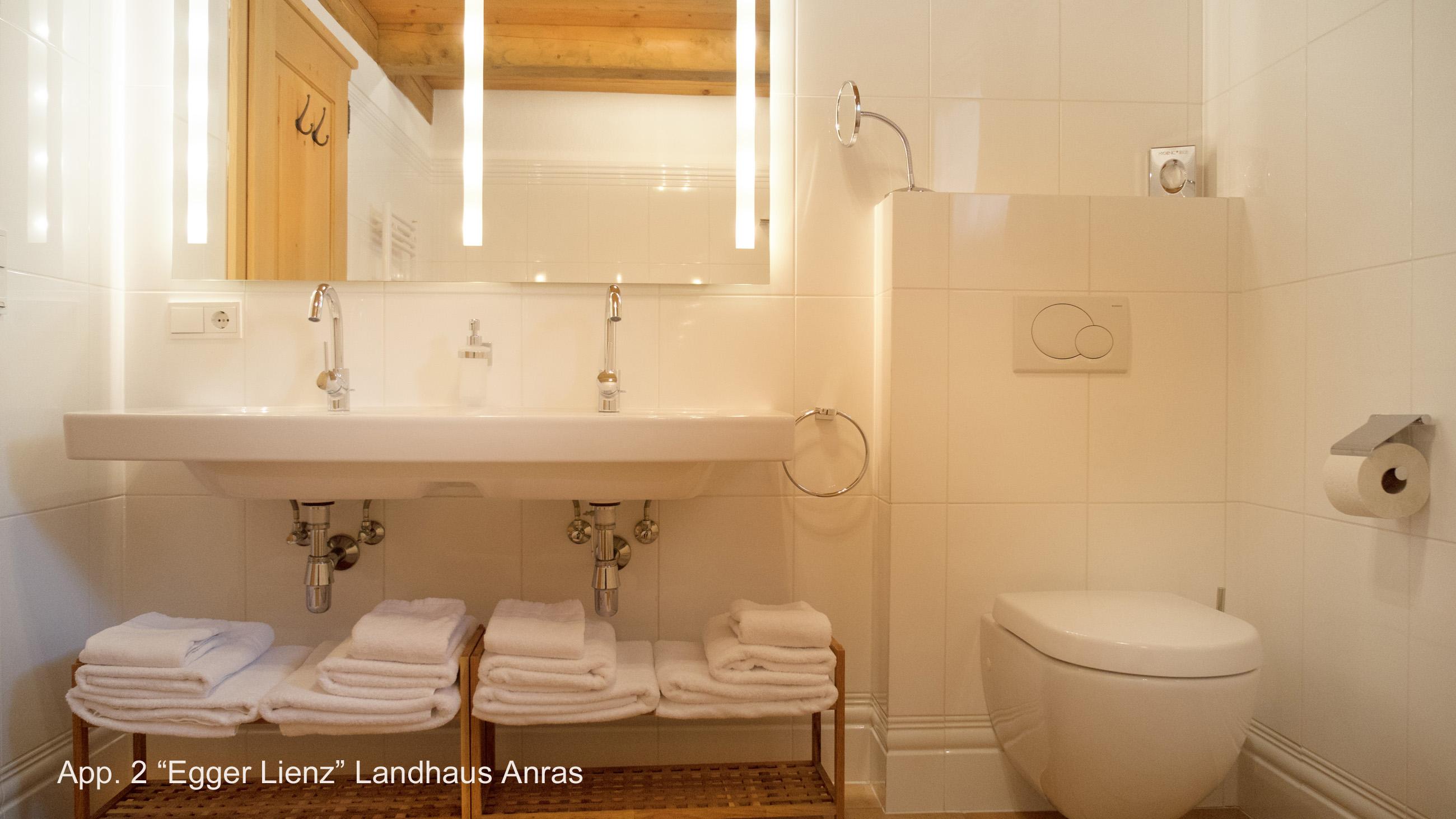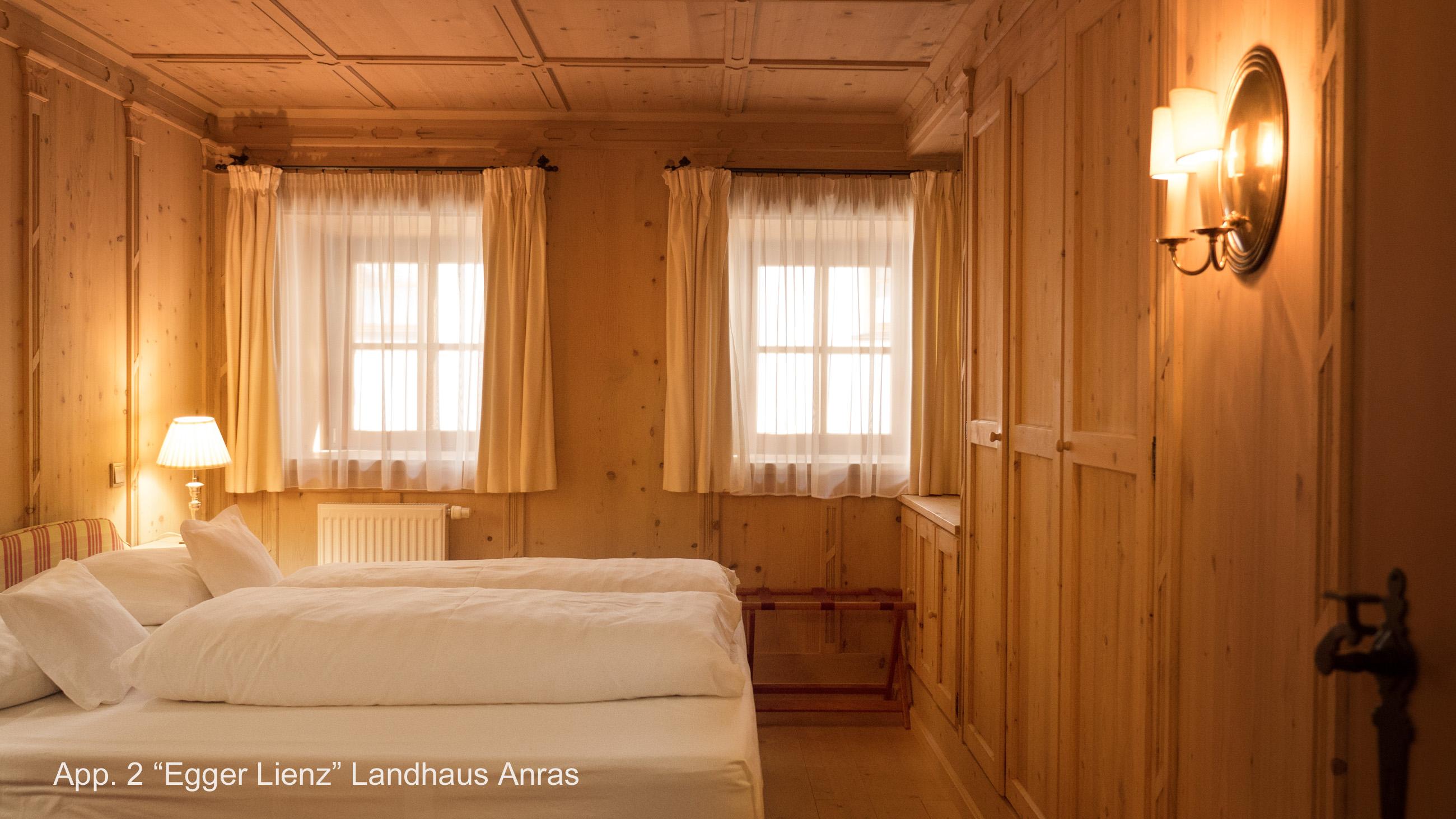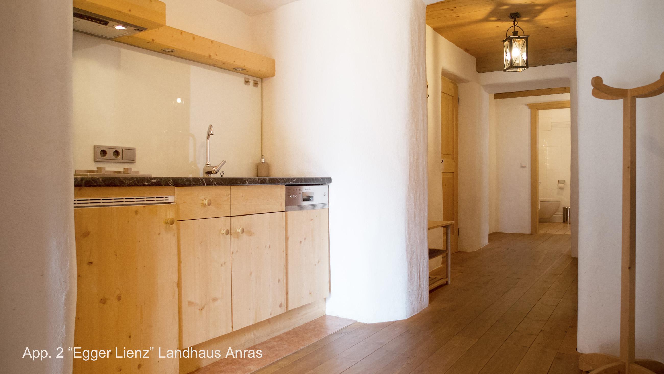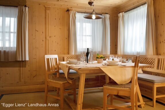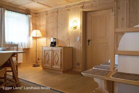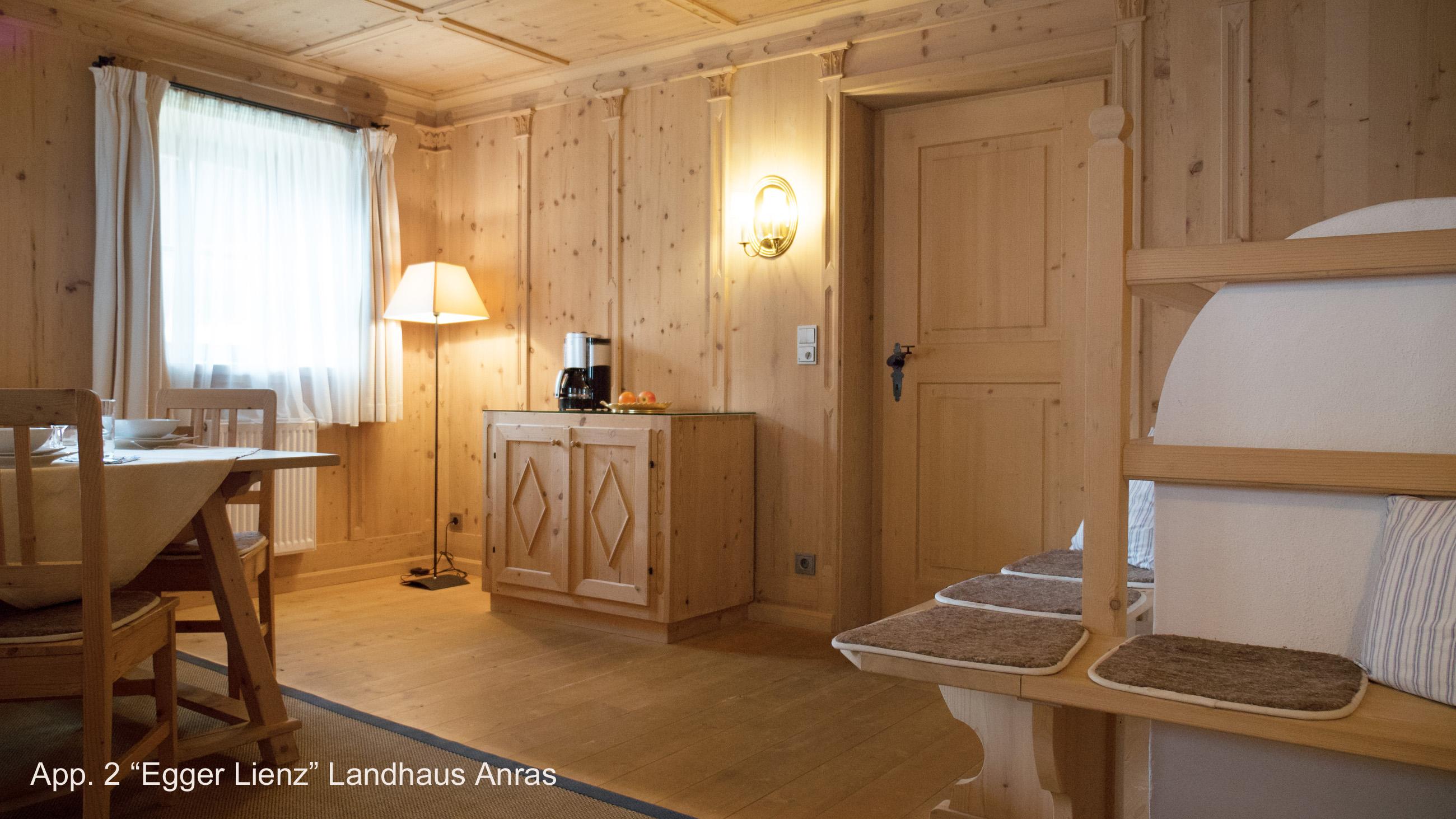 Appartement Egger Lienz ist romantisch durch die originale, alte Bauernstube mit funktionierendem Kachelofen, zwei holzgetäfelte Schlafzimmer. Das moderne Bad mit Wanne ist besonders großzügig. (Handtuchwärmer im Winter) Urgemütlich und exklusiv!