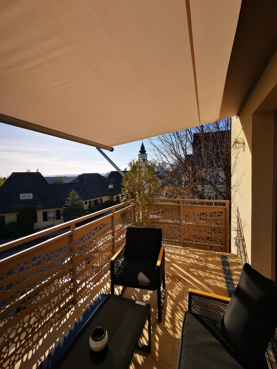 Der große Balkon mit Loungegarnitur vervollständigt Ihr Urlaubserlebnis.