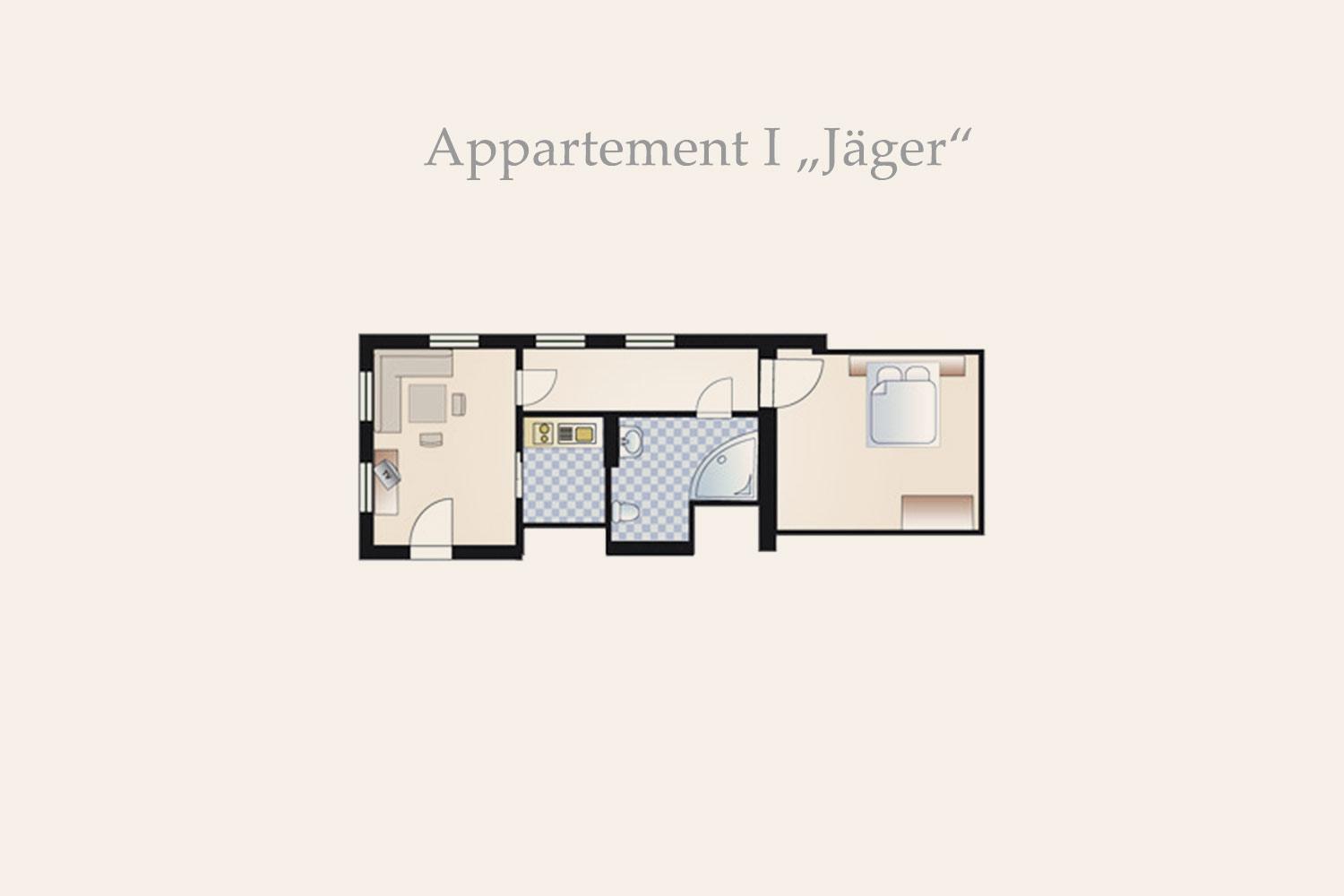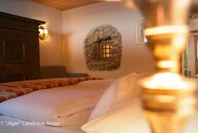 Appartement 1 Jäger Appartement im Landhaus ist besonders romantisch durch die Balkendecken und die teilweise sichtbare Steinmauer, großes Bad mit Wanne,