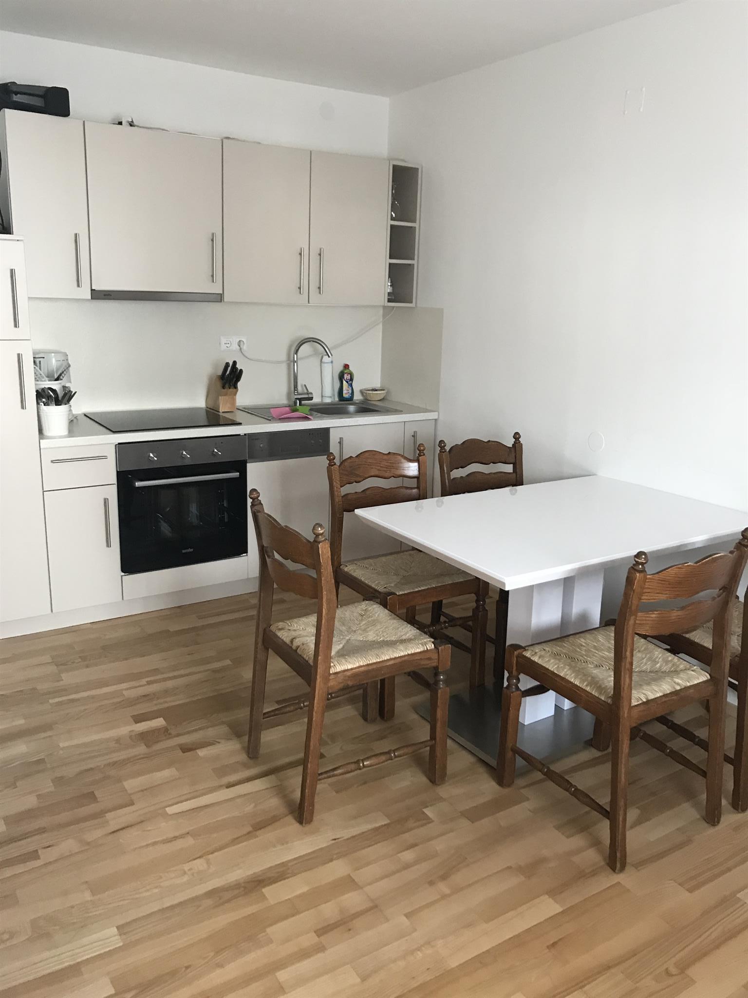 • Wir bieten unseren Gästen voll ausgestattete moderne Wohnungen mit Küche (inkl. Cerankochfeld, Backofen, Geschirrspüler, Kühlschrank mit Gefrierfach, Kaffeemaschine, Wasserkocher, Geschirrtücher und ausreichend Geschirr, Pfannen, Töpfe und eine Mikrowelle)