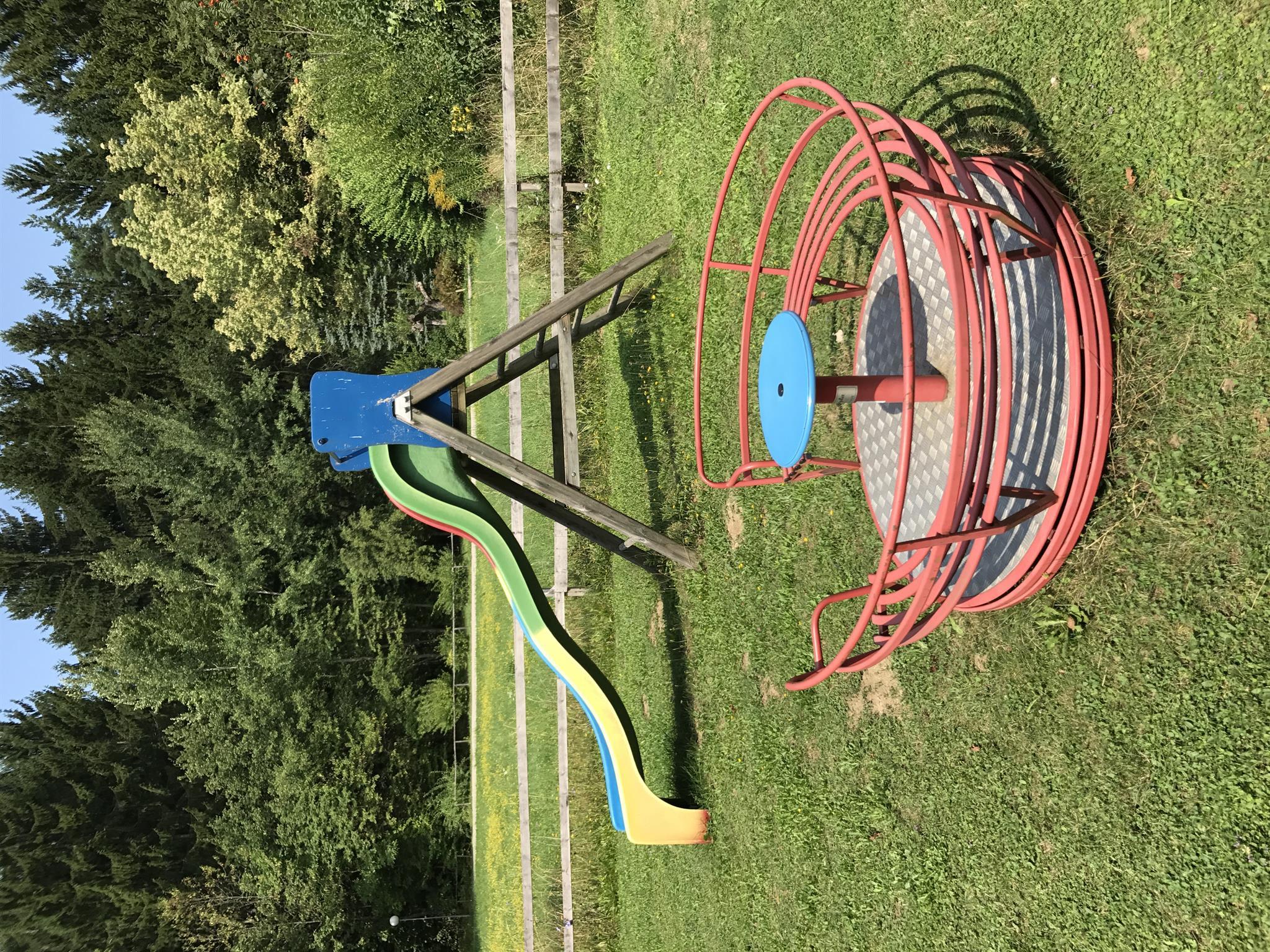 • Auf der großen Spielwiese befinden sich Schaukel, Rutsche und Karussell, wo sich Ihre kleinen Familienmitglieder austoben können.