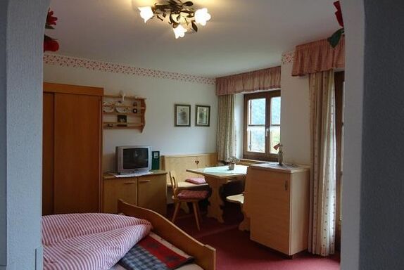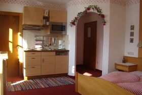 Landlust für Freunde oder Familien die nicht groß aufkochen, dafür aber 2 Badezimmer und einen Panoramablick von der Nordkette bis zum Gletscher genießen wollen. Liebevoll eingerichtetes Appartment (53m²) für 4 - 5 Personen, Wohnschlafzimmer mit kleiner Küche, Geschirrspüler, Doppelbetten, gemütlicher Sitzecke, Kabel-TV und Radio.Dusche und WC, sowie einen Südbalkon mit herrlicher Aussicht. Ein durch einen kleinen Vorraum getrenntes 2. Schlafzimmer mit Kabel-TV, Radio, Ostbalkon,Badezimmer mitDusche/Wanne und extra WC. Küchentücher, Bettwäsche und kuschelige Handtücher sind natürlich vorhanden. Das Gebäck-Sackerl hängt auf Wunsch morgens an der Tür, oder Sie lassen es sich an unserem abwechslungsreichen Frühstücksbuffet mit vielen heimischen Produkten, so richtig guat gian