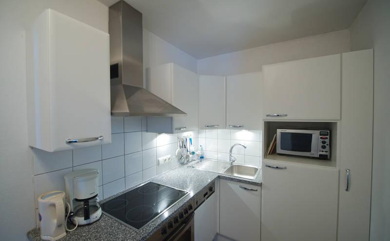 ** moderne Ausstattung in den Ferienwohnungen (Küche, Flat TV)