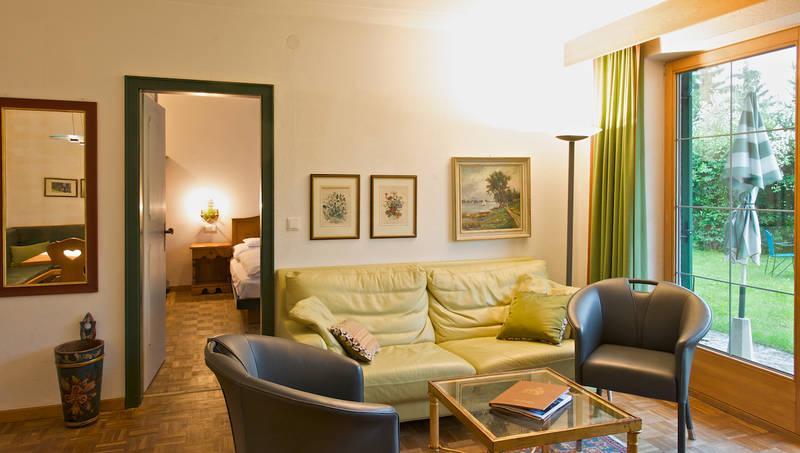 Lage: im Landhaus, Parterre, zirka 10 m vom Haupthaus entfernt, direkter Zugang zum Garten.