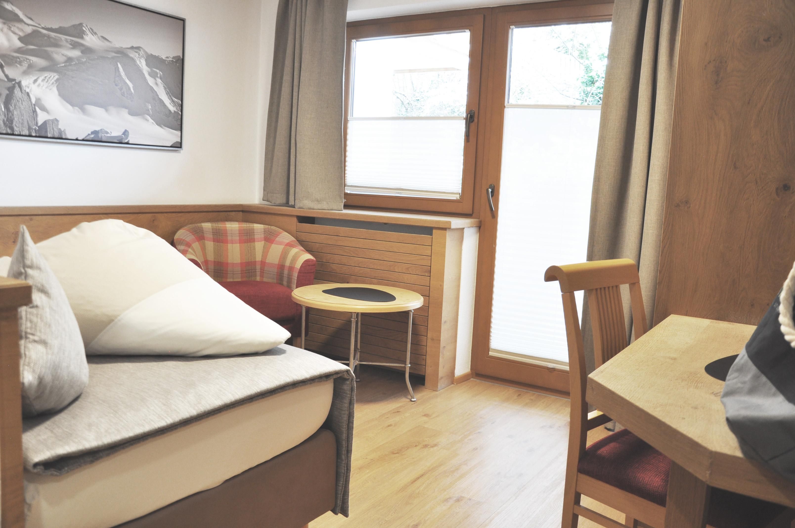 Gemütlich, im Tiroler Landhausstil, eingerichtetes Einzelzimmer mit jeglichem Komfort.