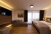 Schönes, mit viel Holz eingerichtetes Doppelzimmer mit Balkon. Ausstattung: Balkon - Badezimmer mit Dusche oder Badewanne - Flachbild TV - gemütliche Sitzecke - Telefon - Radio - gratis W-LAN