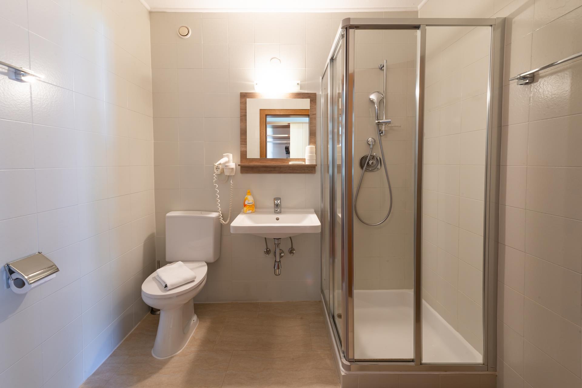 - 1 Badezimmer mit Dusche und WC, inklusive Haarföhn