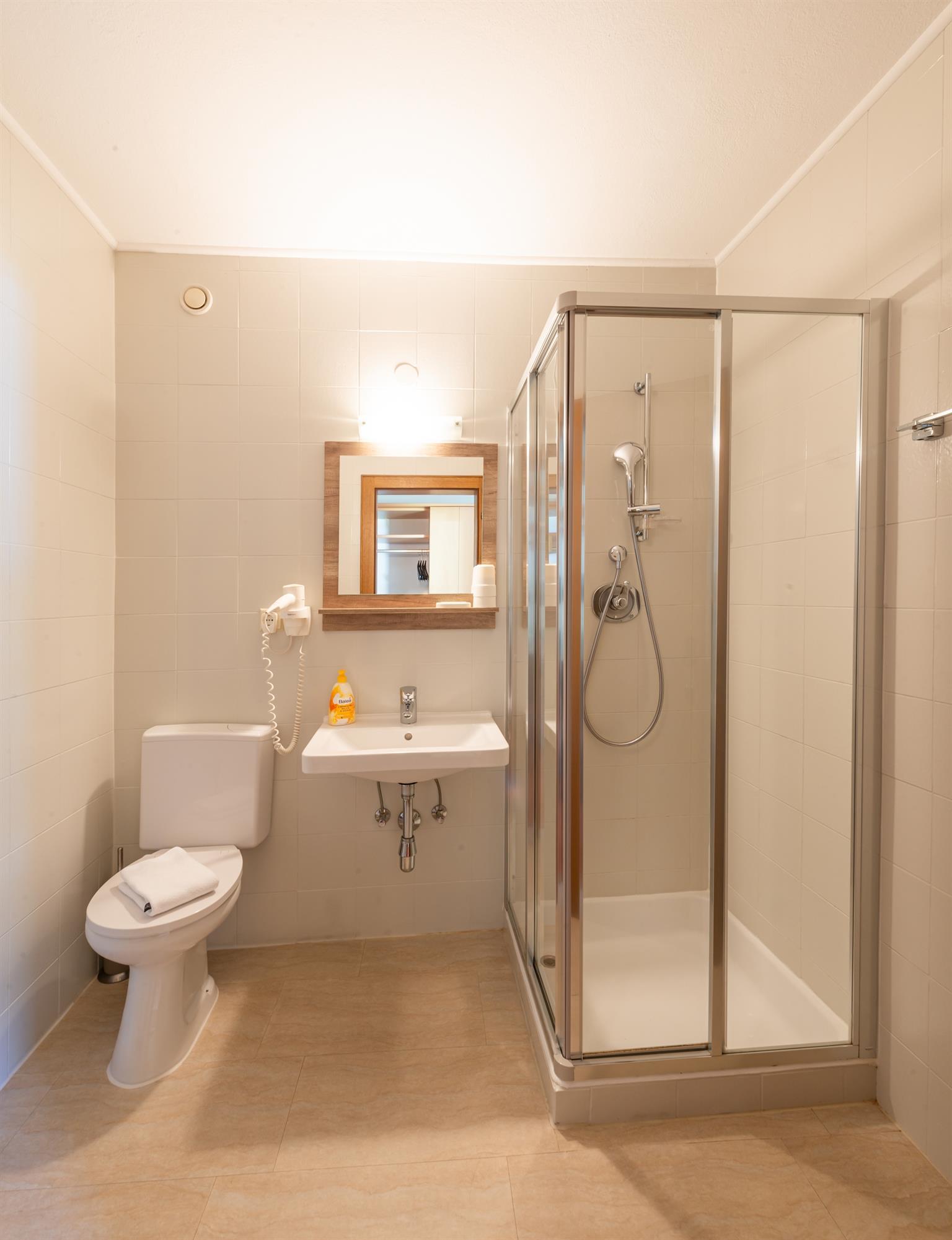 - 1 Badezimmer mit Dusche und WC, inklusive Haarföhn