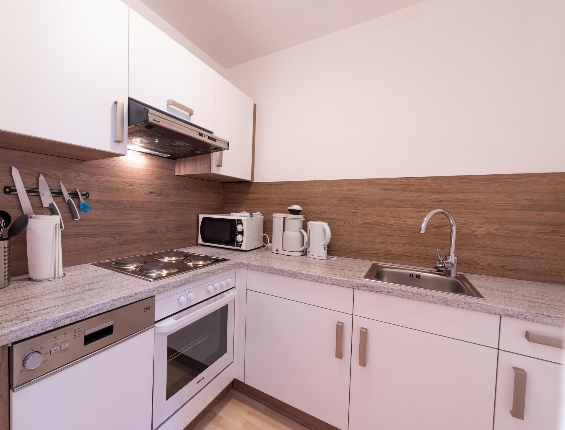 - 1 voll ausgestattete Küche mit Kaffeemaschine, Geschirrspüler, Mikrowelle,