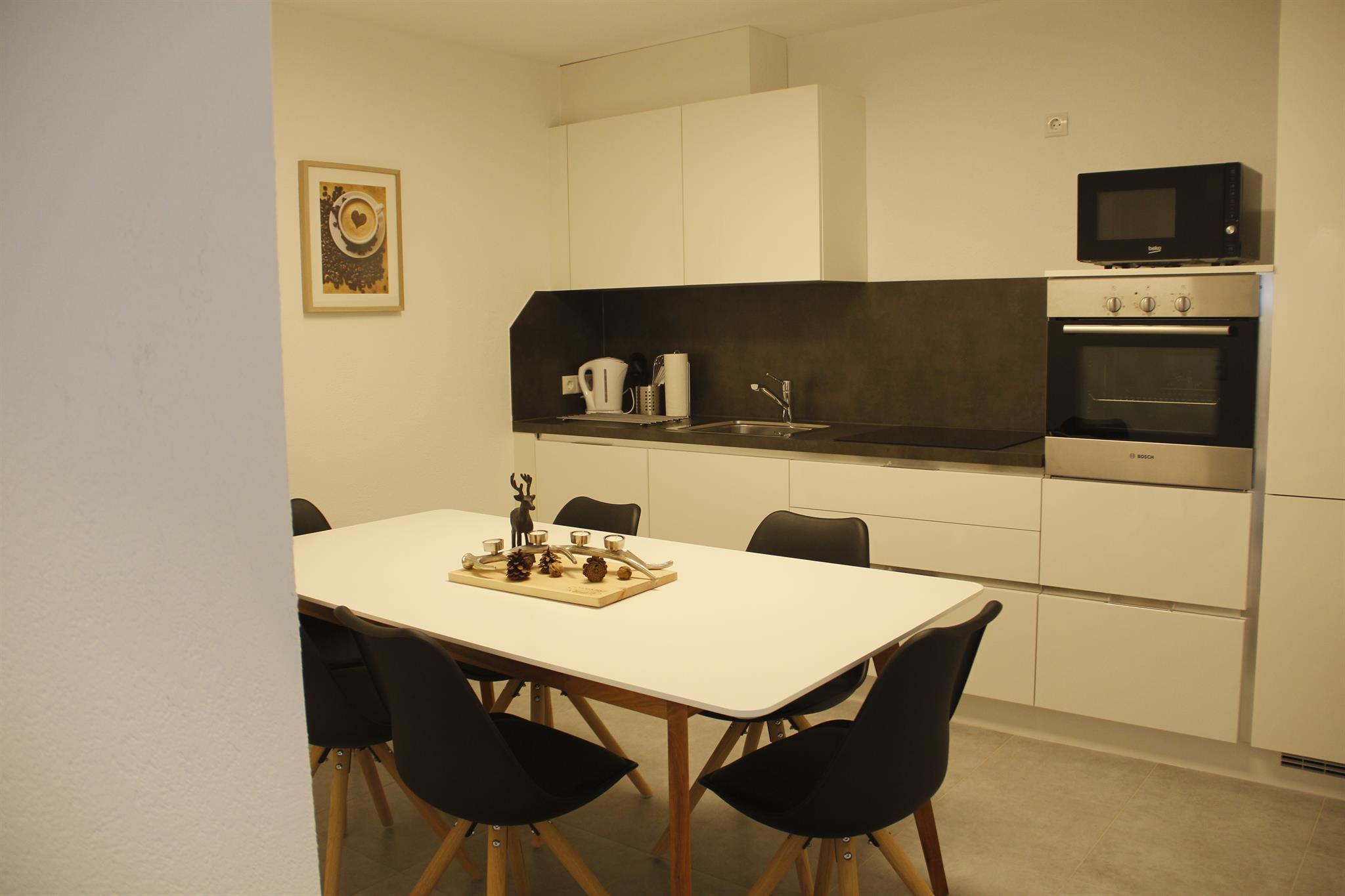 - 1 voll ausgestattete Küche mit Kaffeemaschine, Geschirrspüler, Mikrowelle,