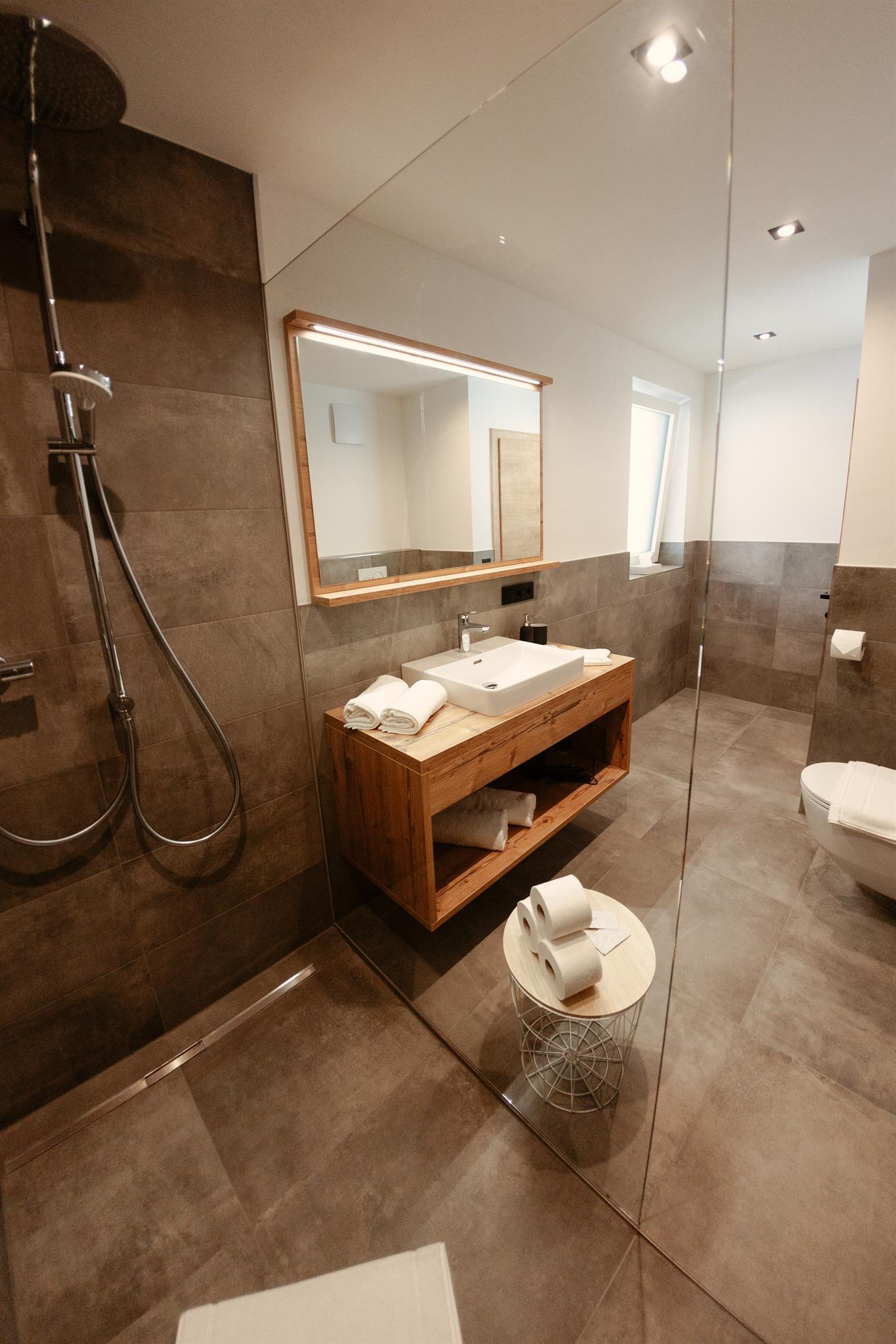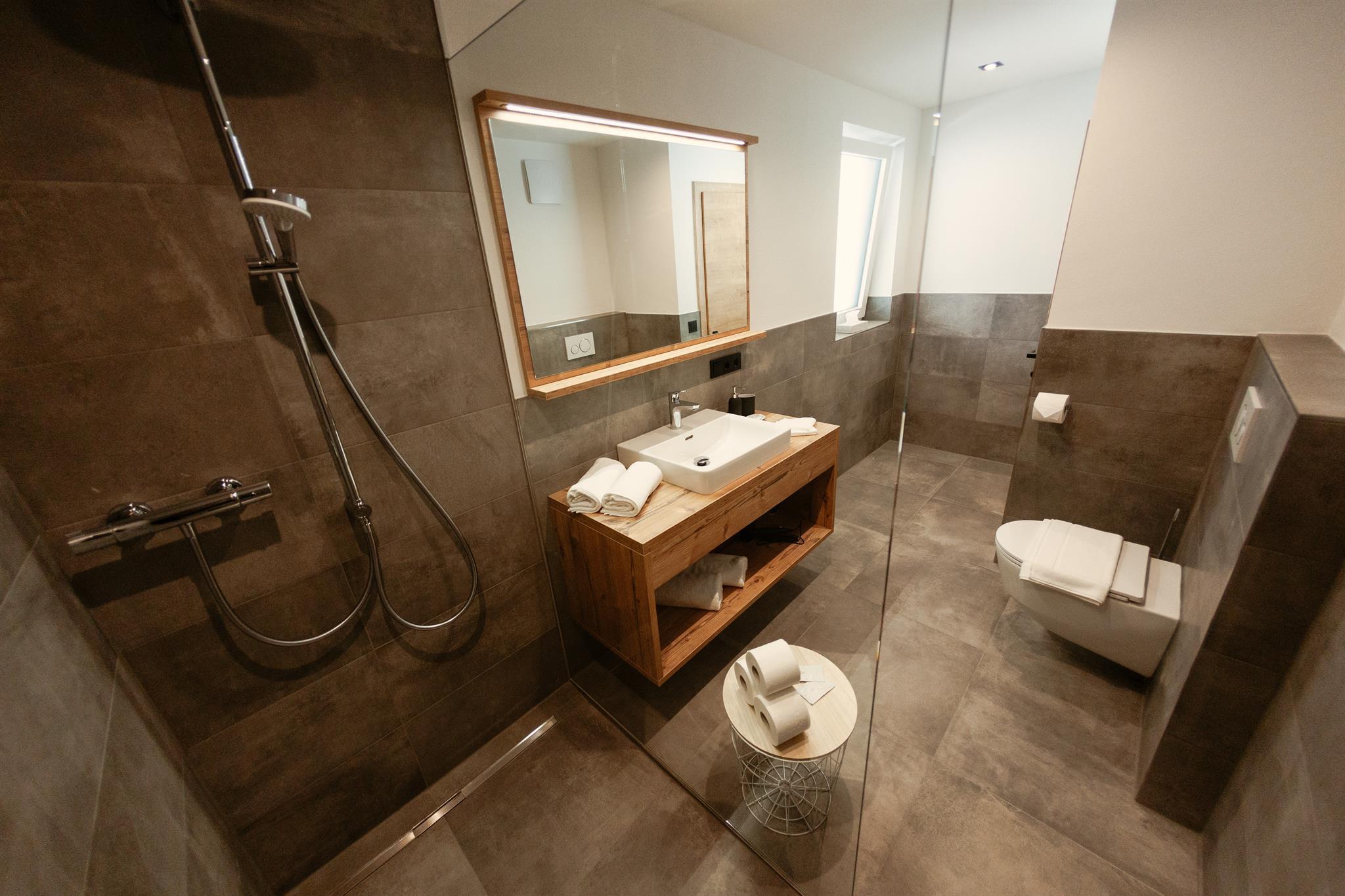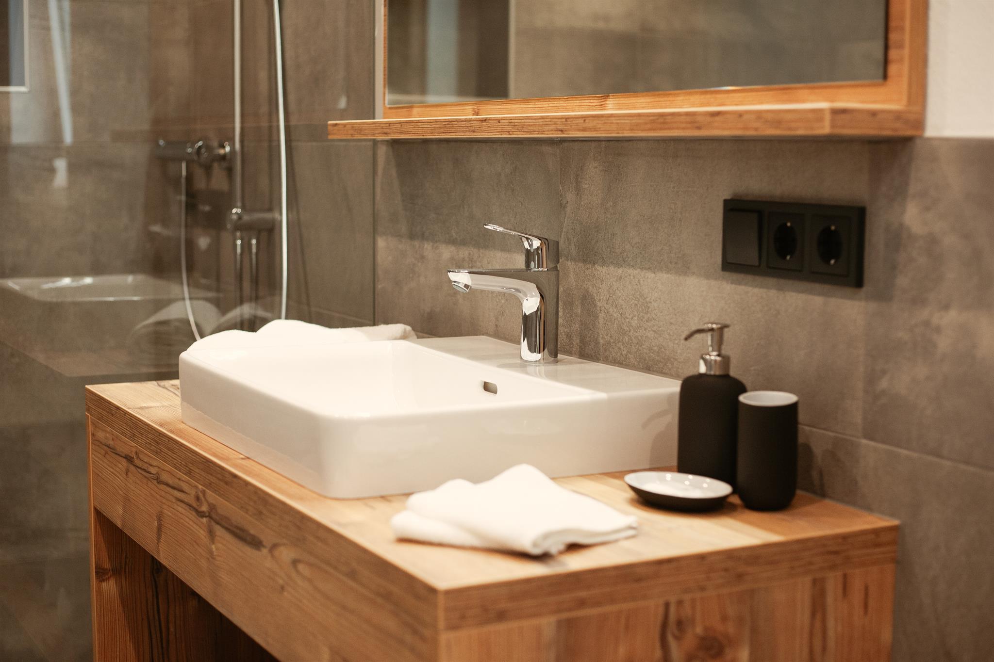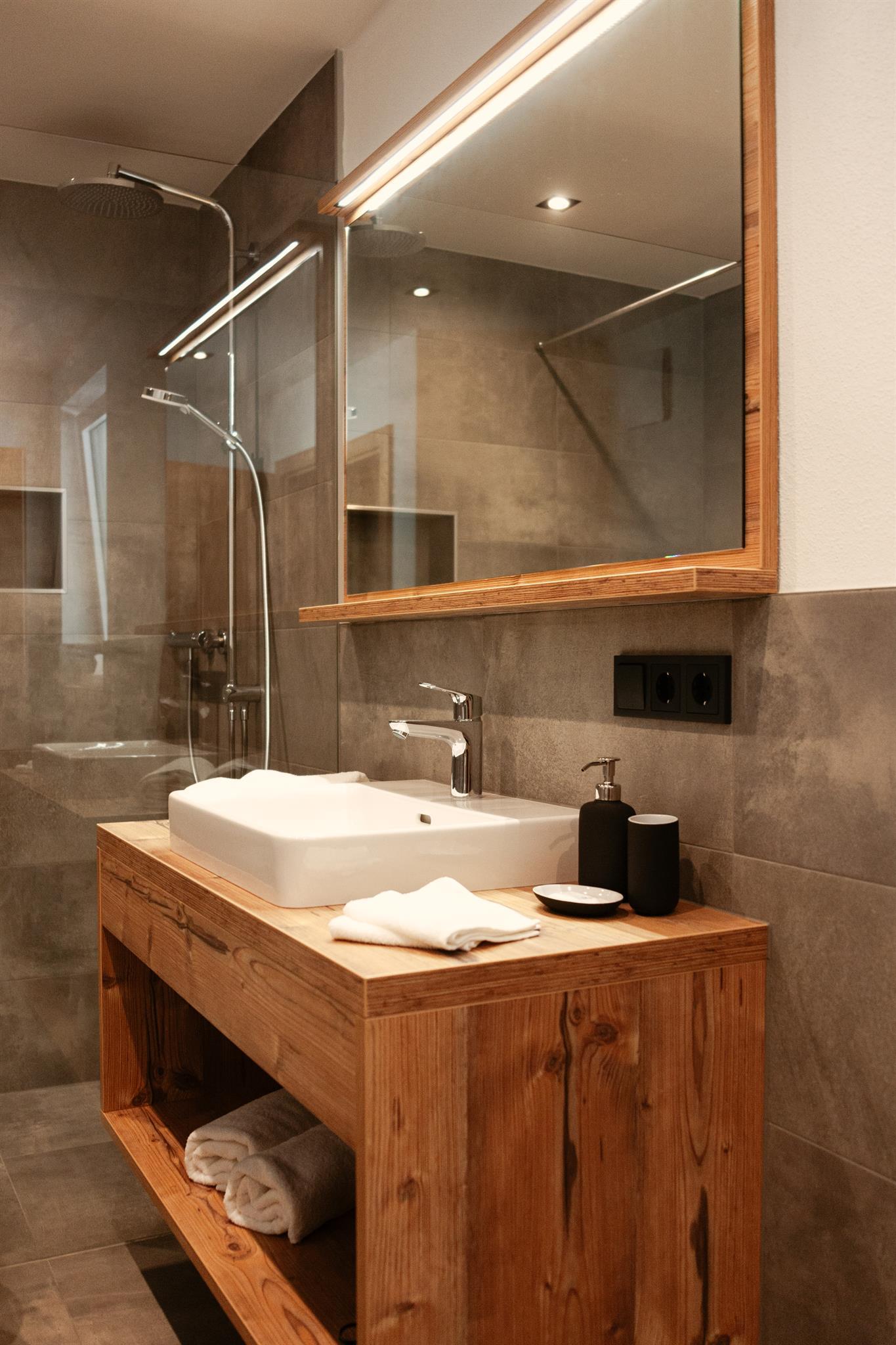Natürliche Materialen aus Tischlerhand, ein stilvolles Badezimmer, zeitgemäße Technik und eine komfortable Ausstattung sorgen für ein uriges Ambiente zum Wohlfühlen.