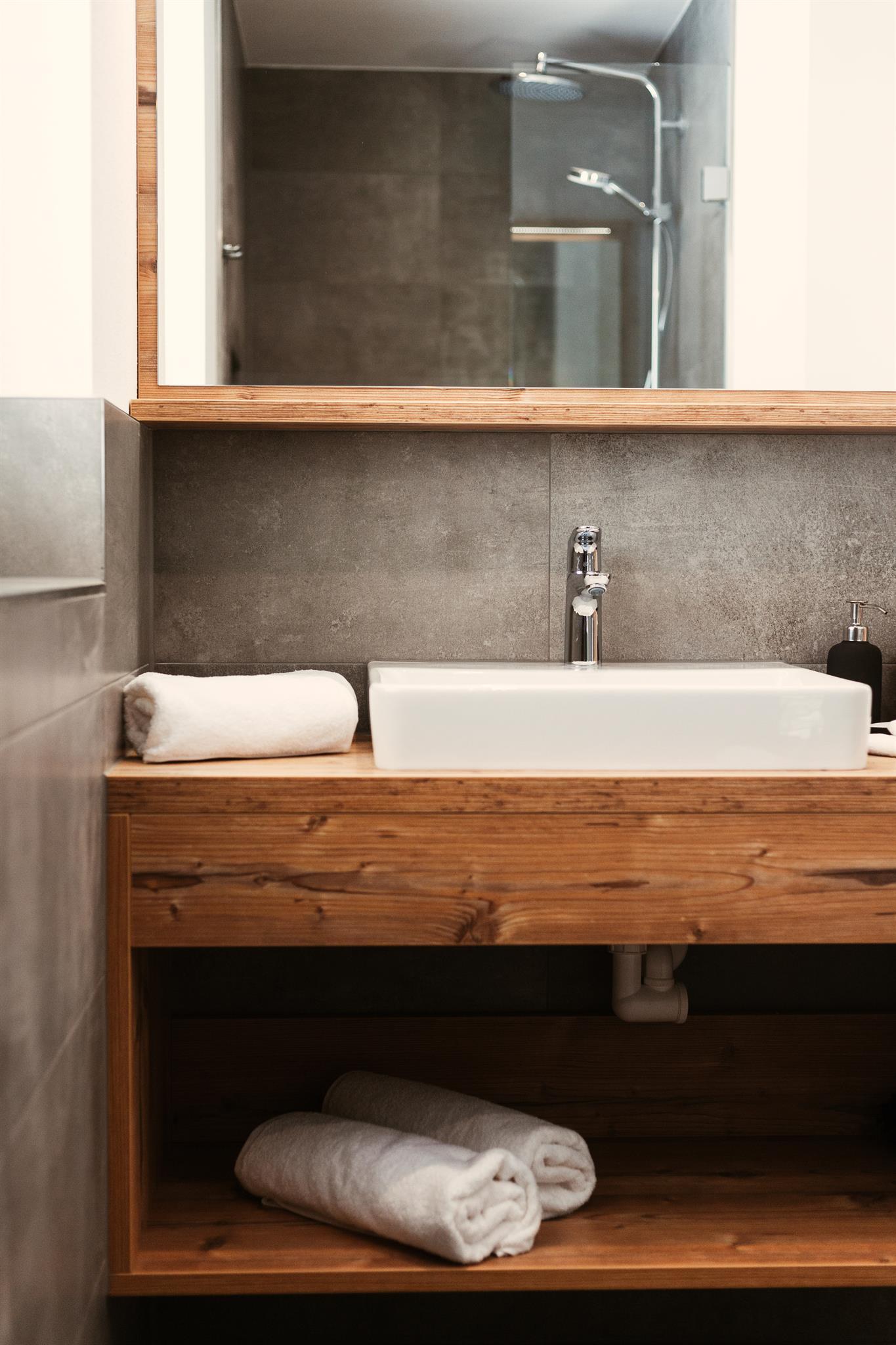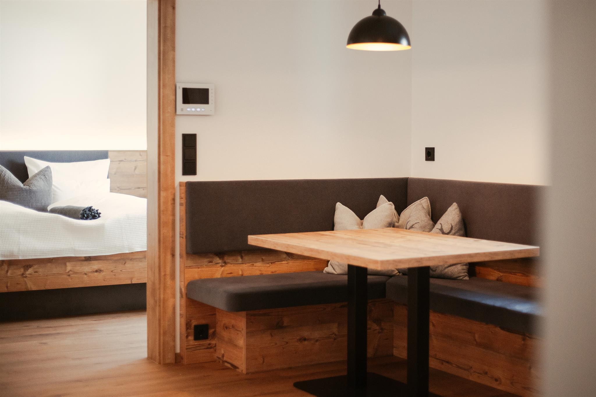 Natürliche Materialen aus Tischlerhand, ein stilvolles Badezimmer, zeitgemäße Technik und eine komfortable Ausstattung sorgen für ein uriges Ambiente zum Wohlfühlen.