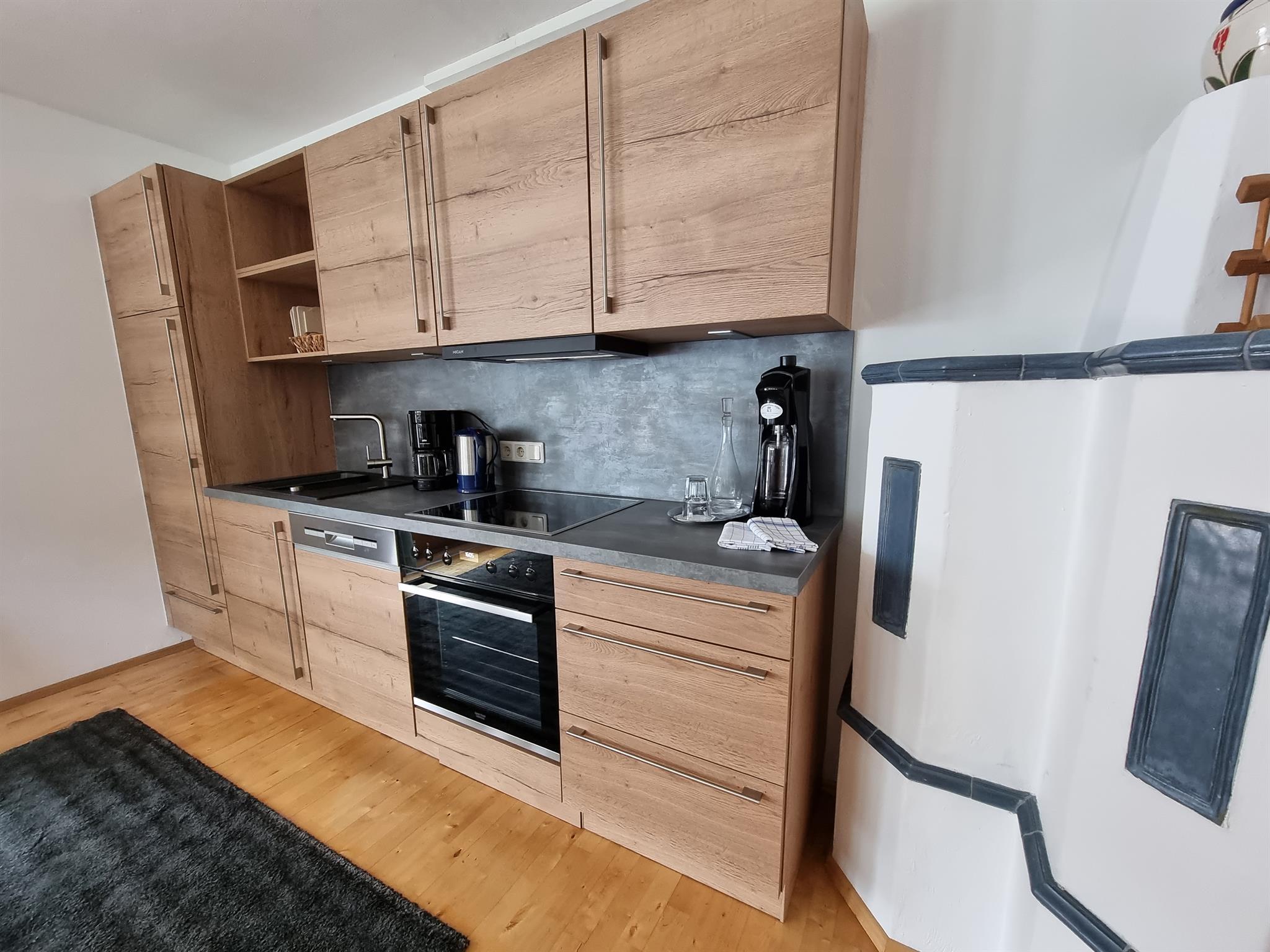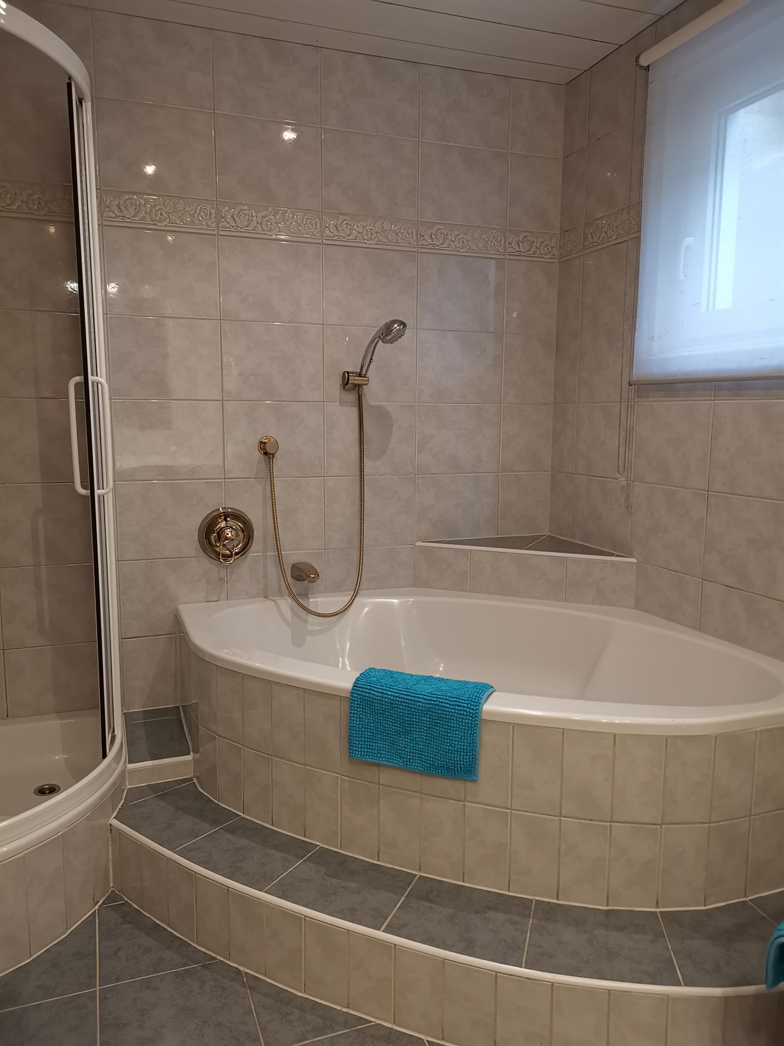 40 m2, gemütliche Wohnküche mit Sofa und TV, separates Schlafzimmer mit TV, sehr sonniger und ruhiger Balkon, Dusche und WC.