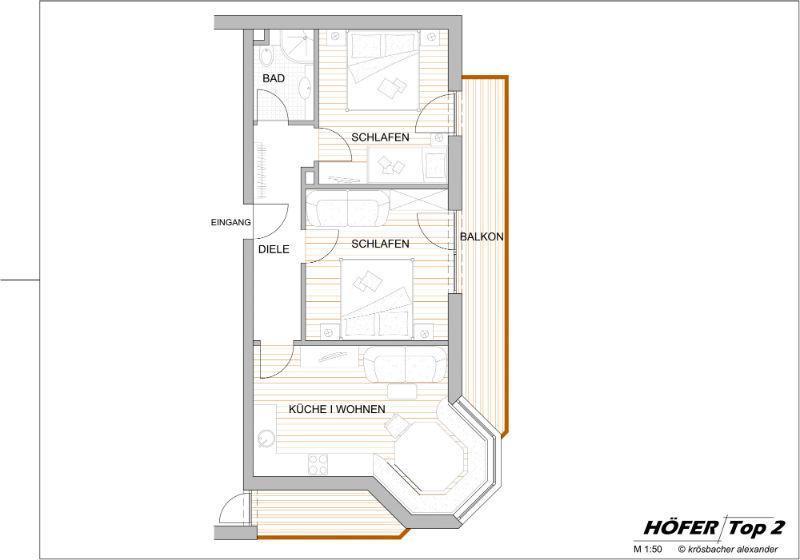 60 m2, großzügige Wohnküche mit gemütlichen Erker, Sofaecke mit TV, 2 separate Schlafzimmer, großer Balkon mit herrlichem Ausblick, Dusche und WC.