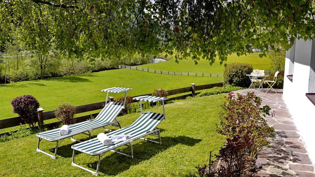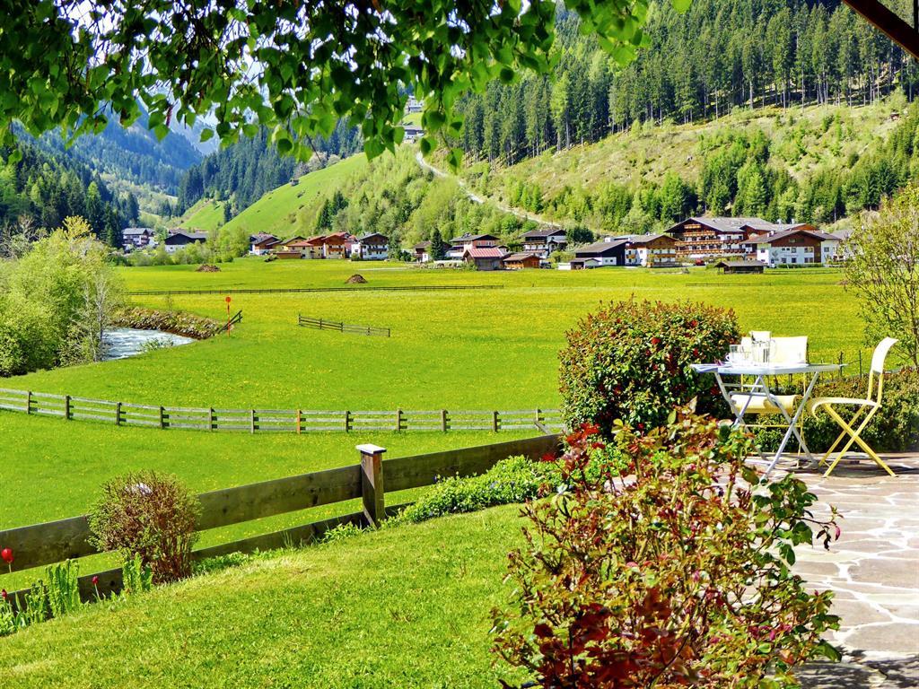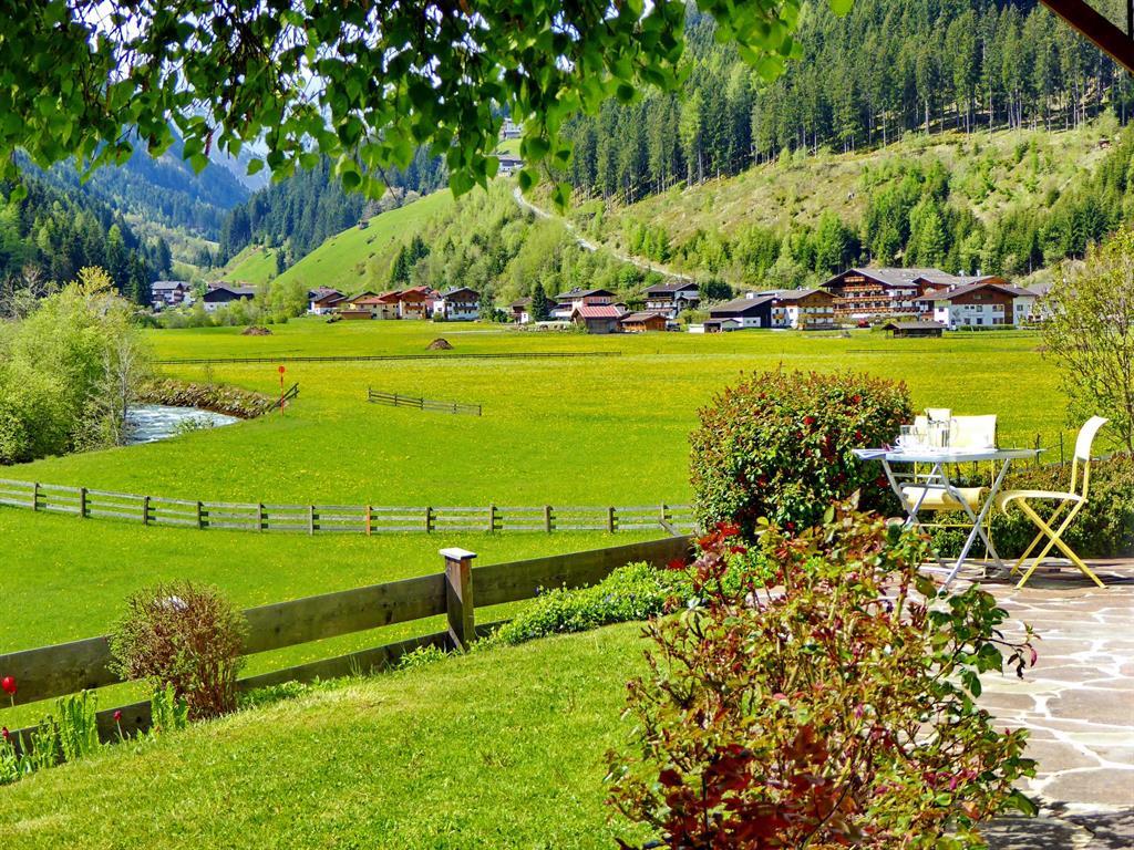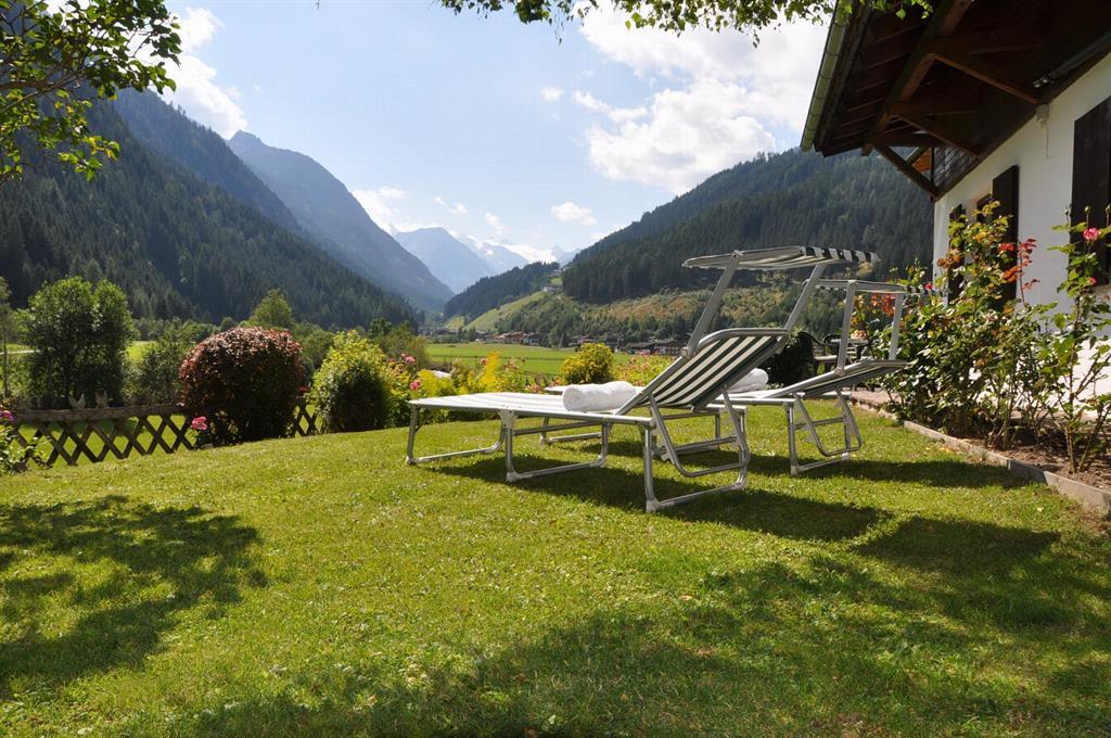 Die gemütliche Sonnenterrasse mit Garten und herrlichem Blick zum Gletscher lädt zum erholsamen Verweilen ein.