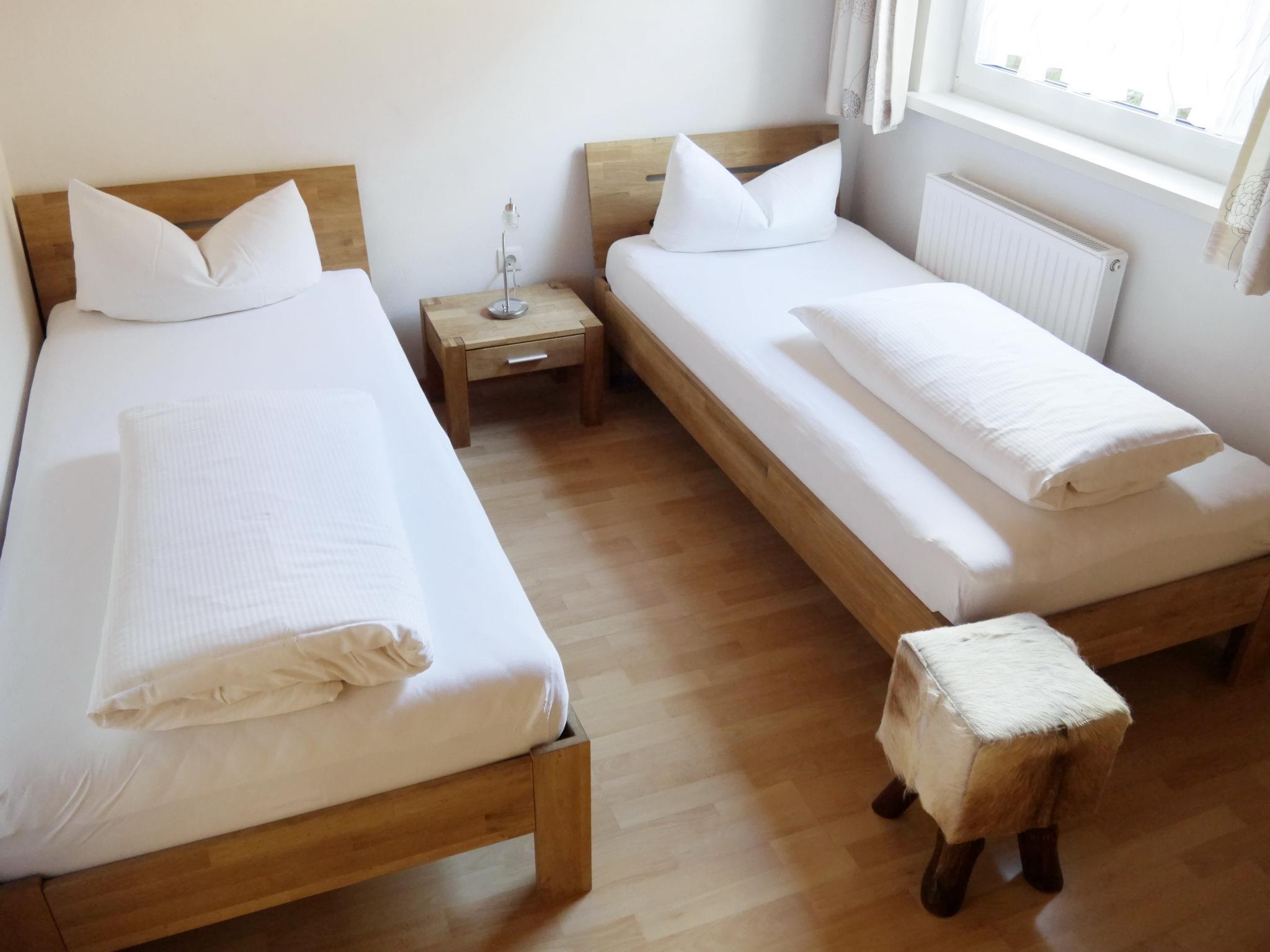 1 Schlafzimmer mit Doppelbett und 1 separates Schlafzimmer mit Einzelbetten.