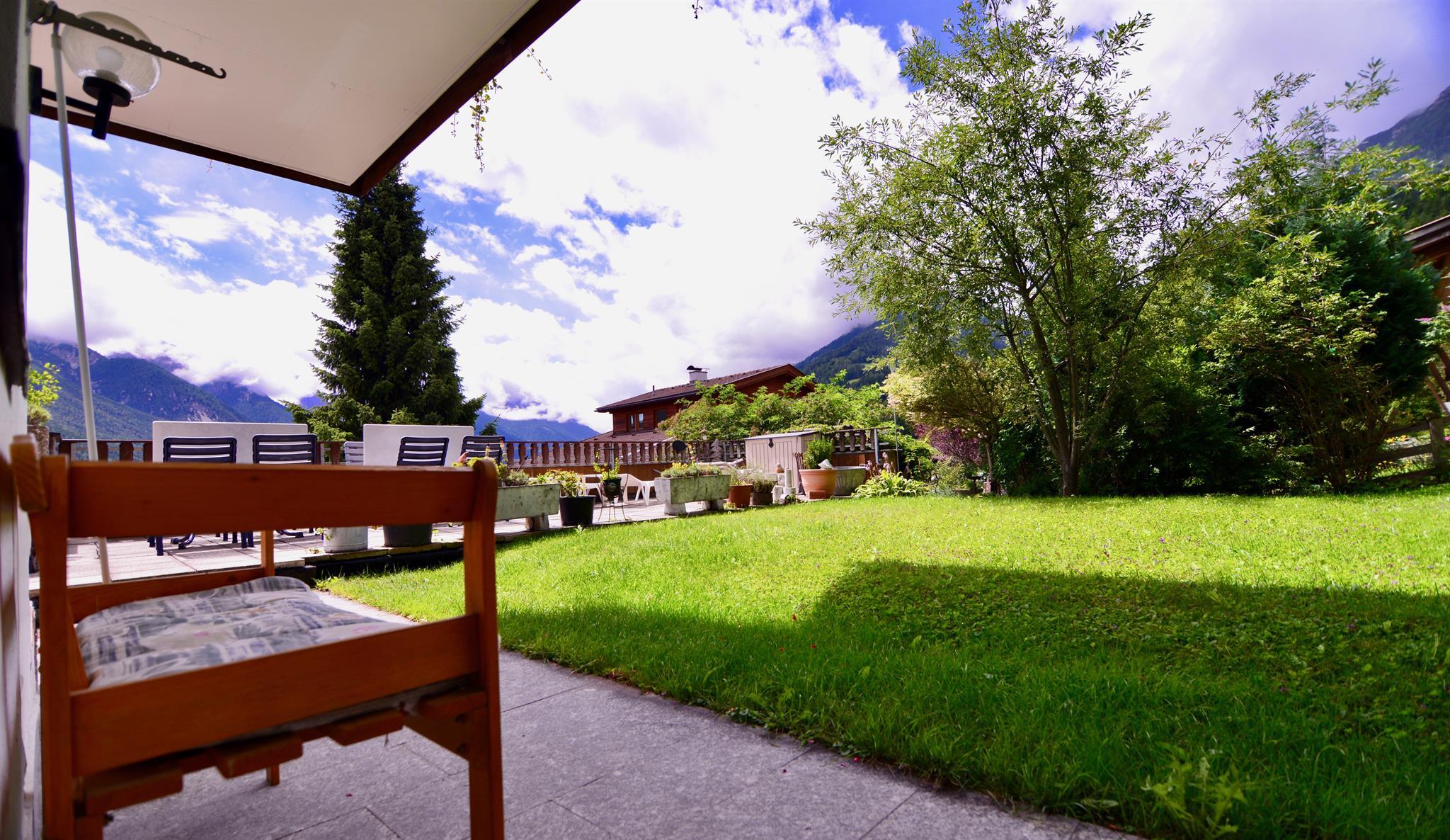 wir sind auf 1080 m, ruhige Lage kein Durchzugsverkehr mit einer schönen Aussicht ins Tal und Dem Gletscher.