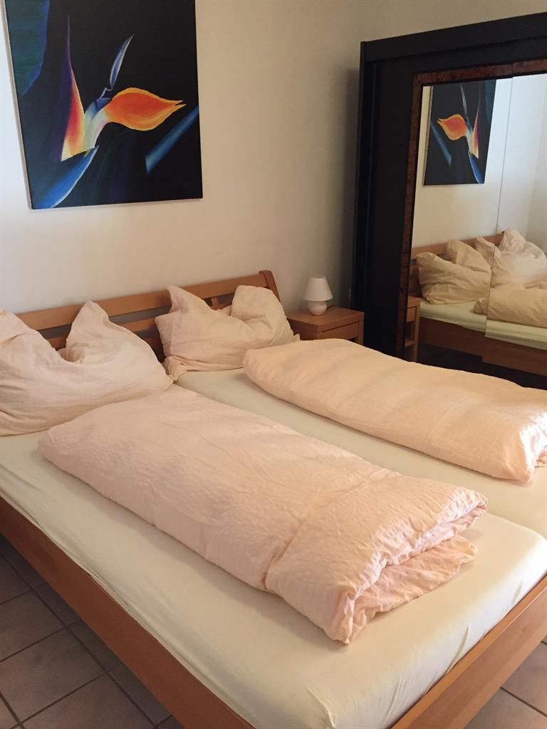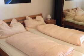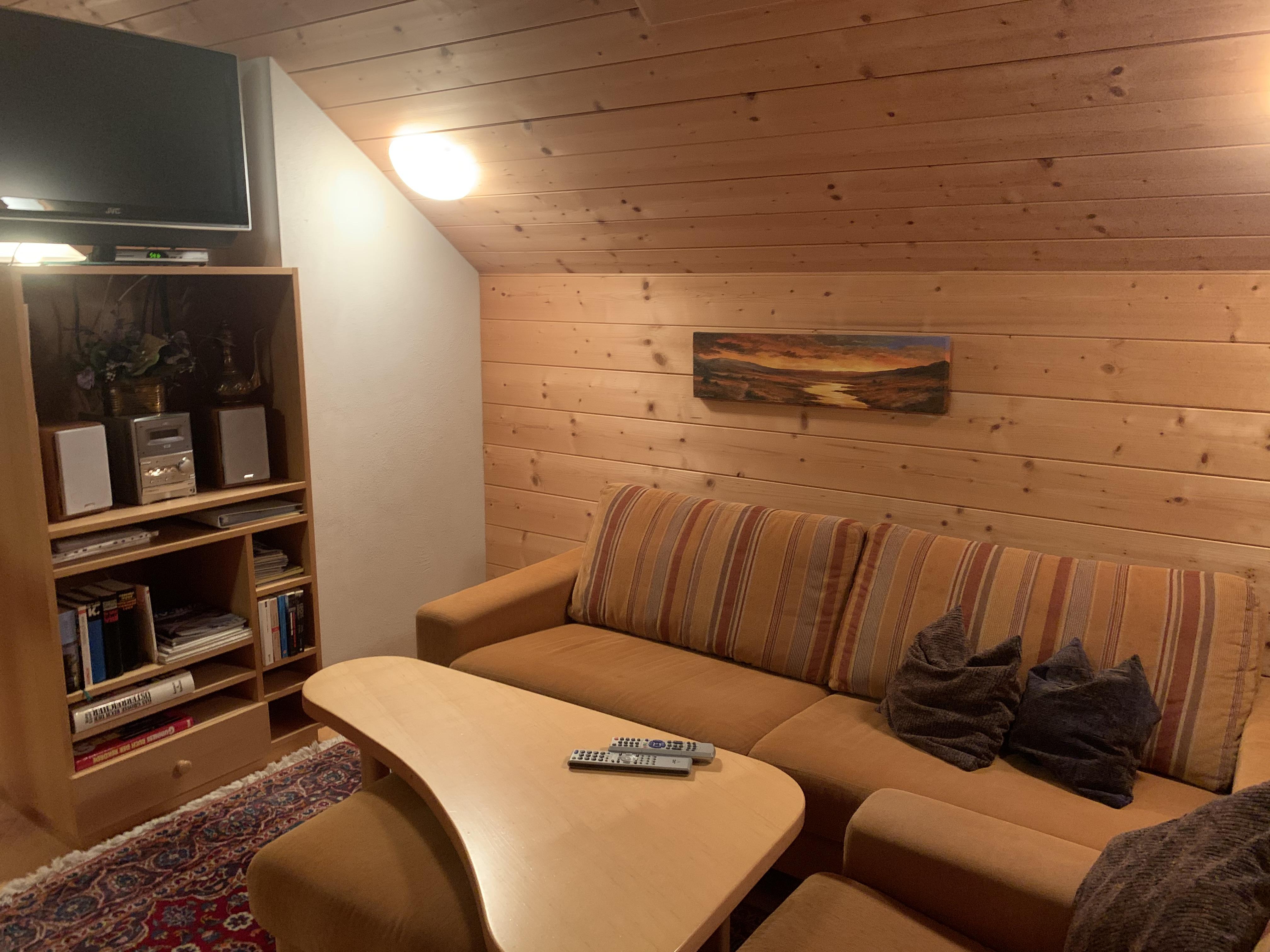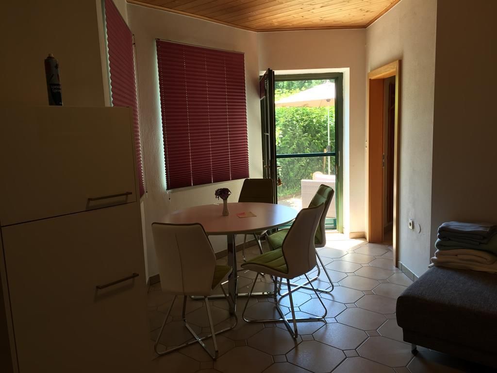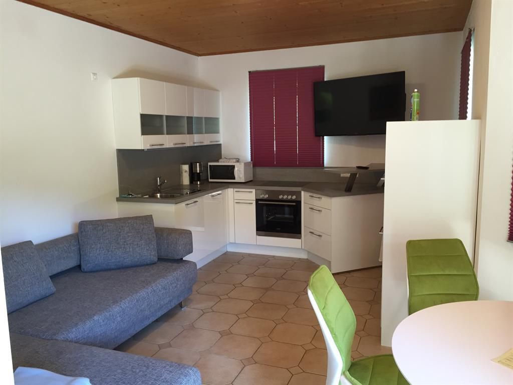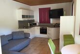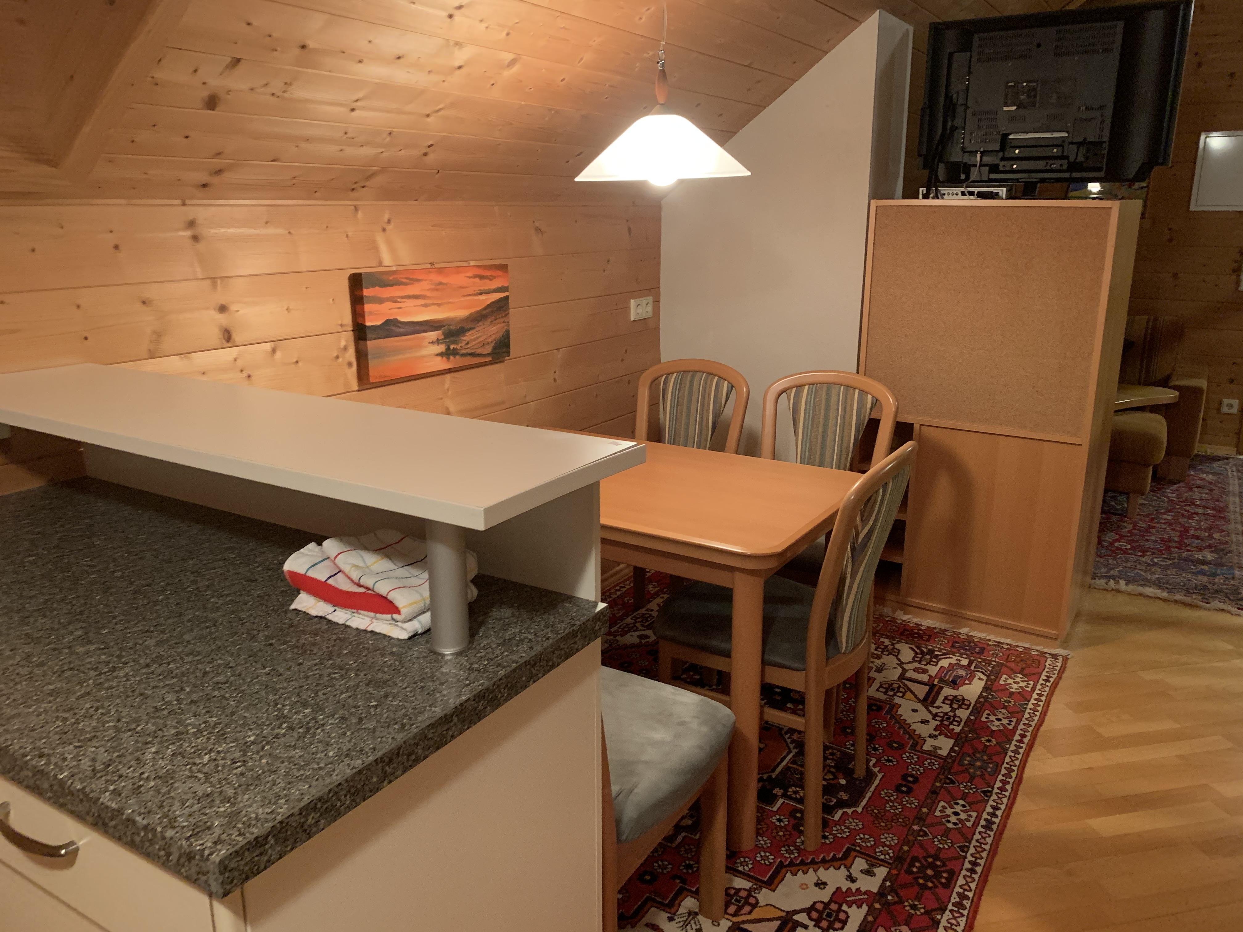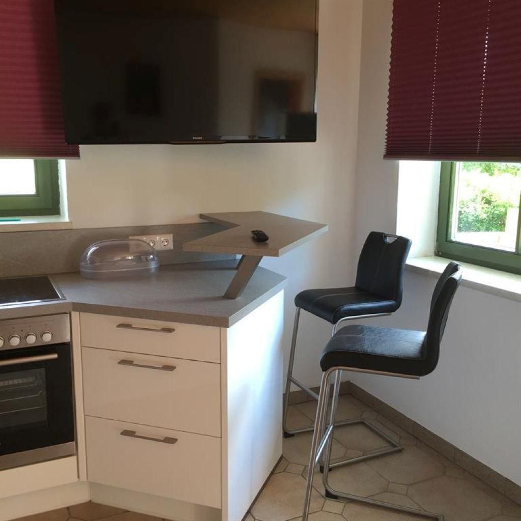 Unsere charmante Ferienwohnung im Untergeschoss bietet eine Wohnnutzfläche von ca. 50 m² und verfügt über ein gemütliches Schlafzimmer sowie ein Badezimmer mit Dusche und WC. Die neu eingerichtete Wohnküche ist vollständig ausgestattet mit vier E-Platten, einer Kaffeemaschine, einem Geschirrspüler und einem großen Kühl- und Gefrierschrank. Ein komfortables Sofa, ein Esstisch sowie eine Theke und SAT-TV mit Großbildschirm sorgen für ein angenehmes Wohnambiente. Kostenloses WLAN und zentrale Beheizung sind selbstverständlich vorhanden.