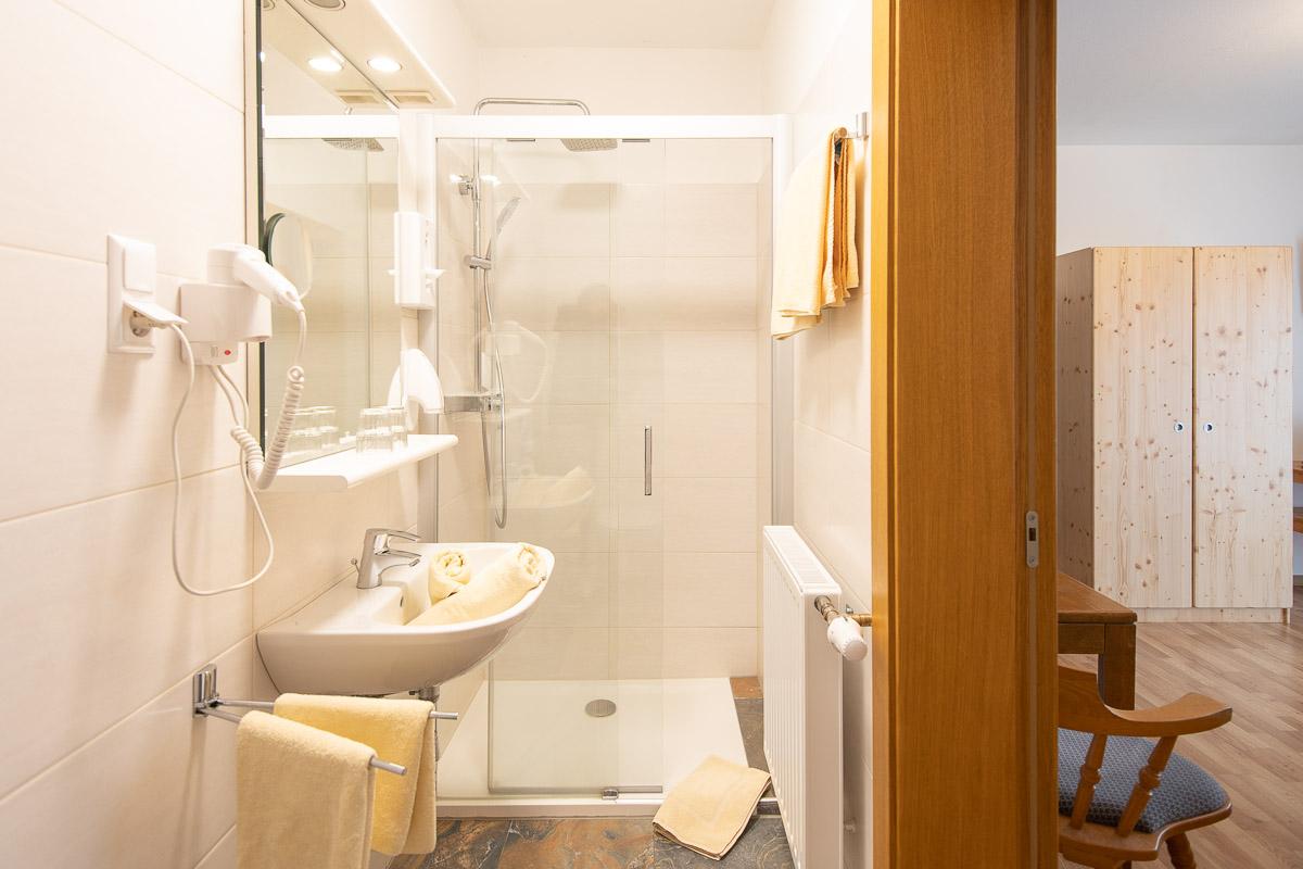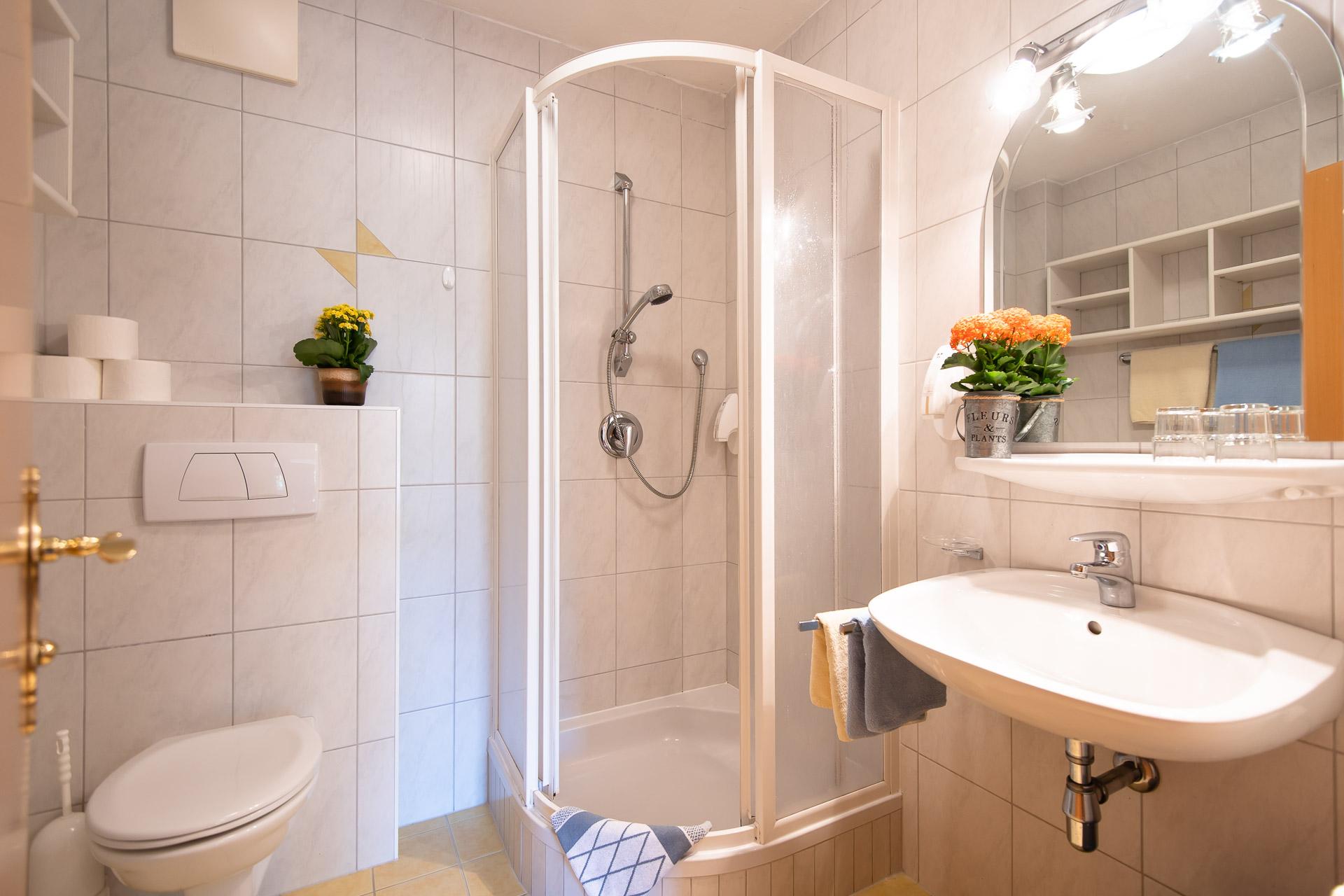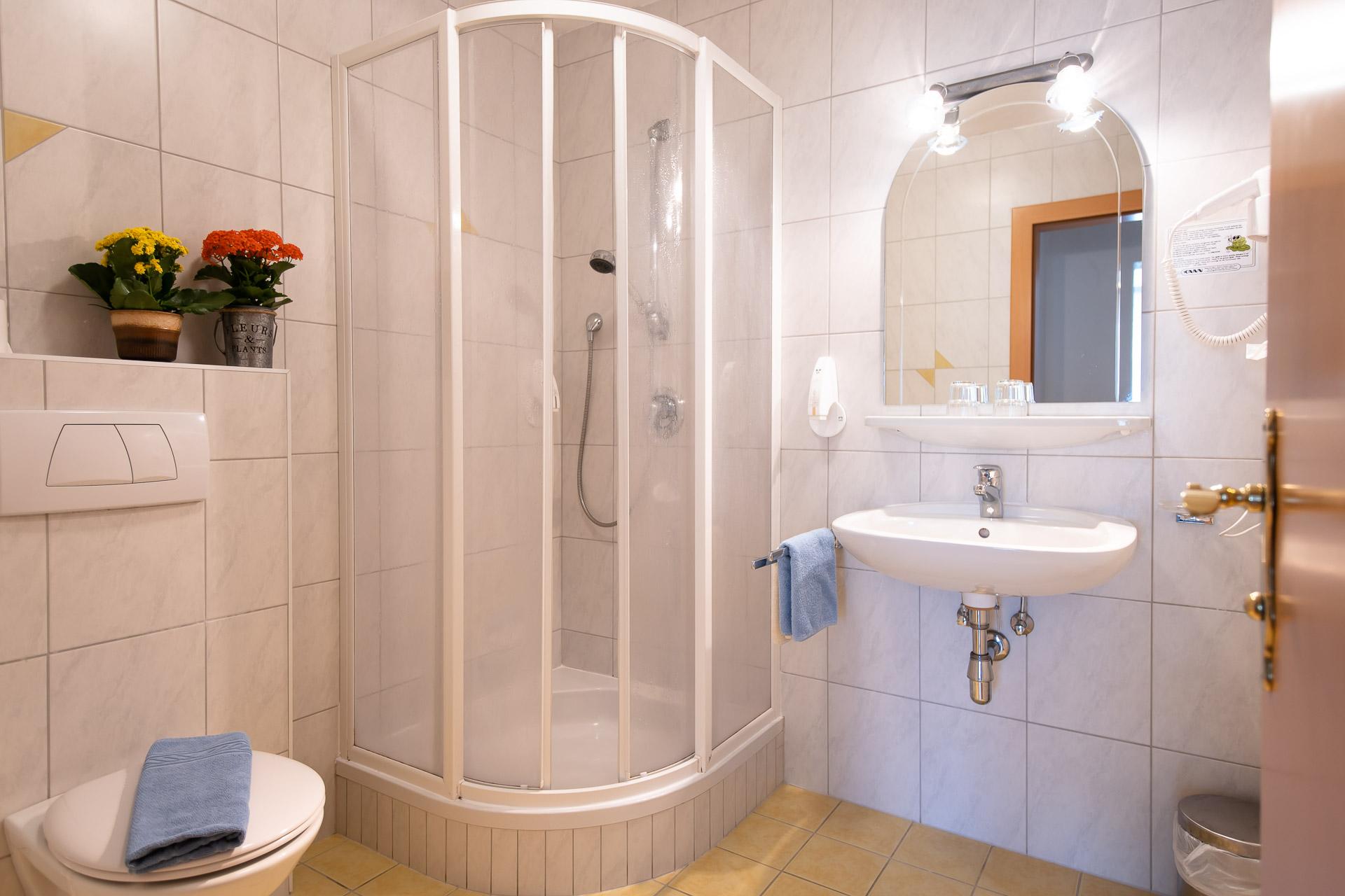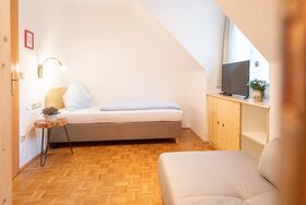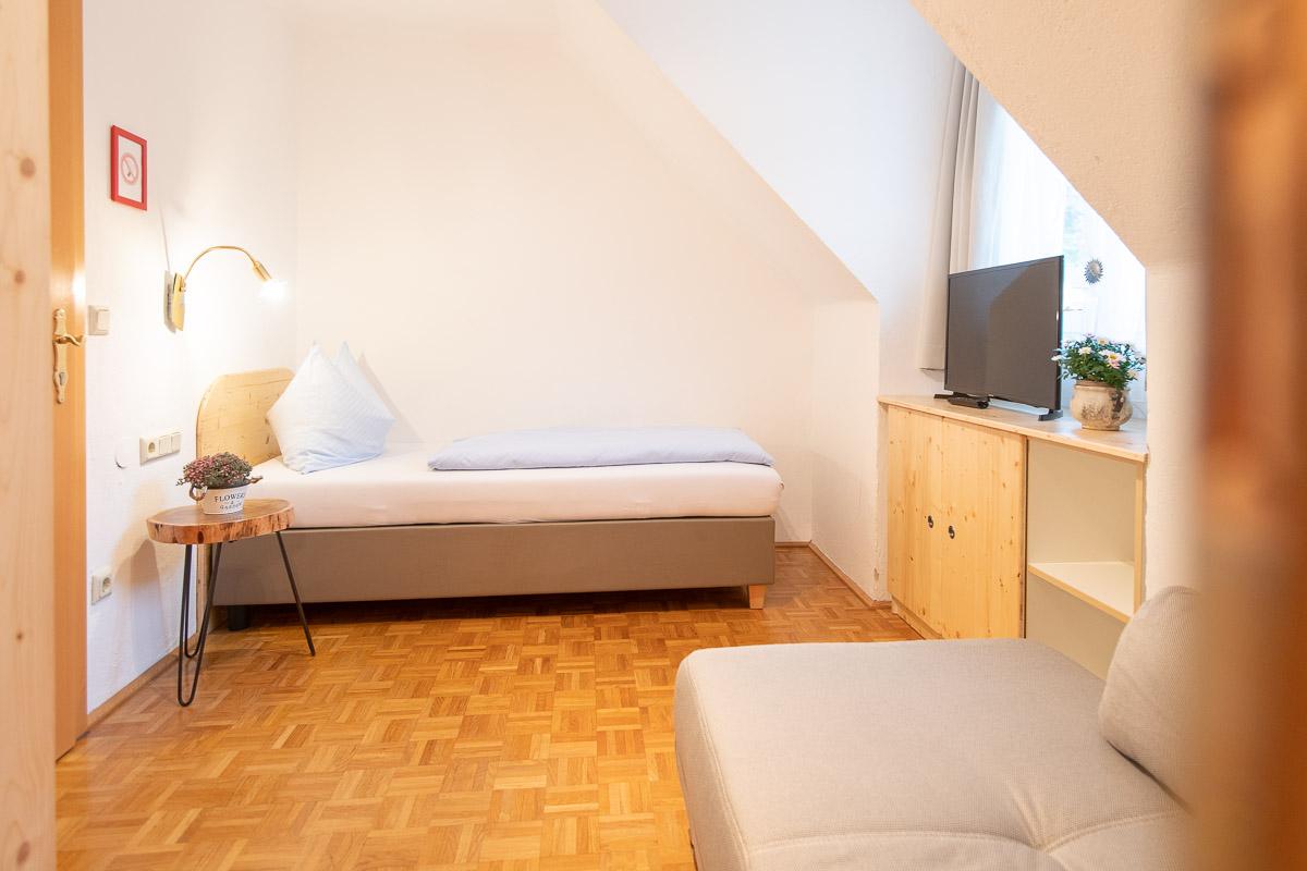 Einzelzimmer mit Dusche/WC, Fön, Zimmersafe, WIFI und Flatscreet SAT-TV, Seeblick