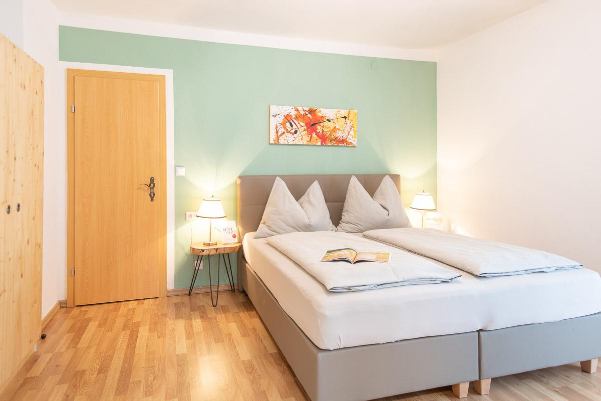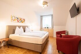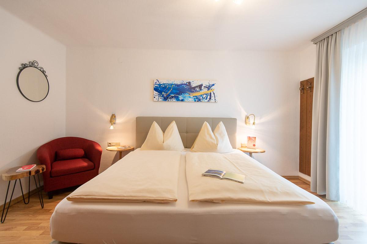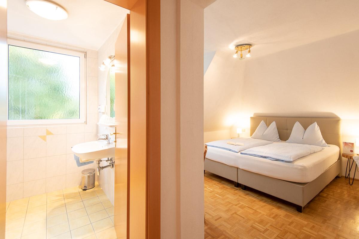 Doppelzimmer mit Dusche/WC, Fön, Safe, WIFI und Flatscreen SAT-TV, Seeblick