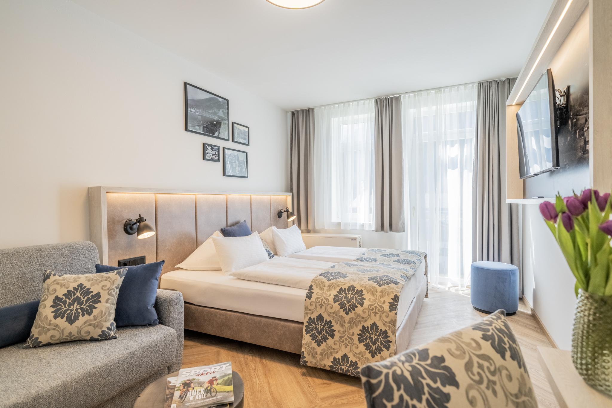2-Zimmer-Appartement, ca. 40 m2, Balkon zum See, 2 getrennte Schlafzimmer, 2x Bad/Dusche/WC, Farb-Sat-TV, Telefon, Safe